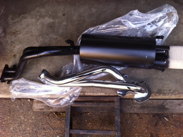 Got the RB exhaust installed, flywheel and clutch inside also. She revs much more easily now and throttle response is great.