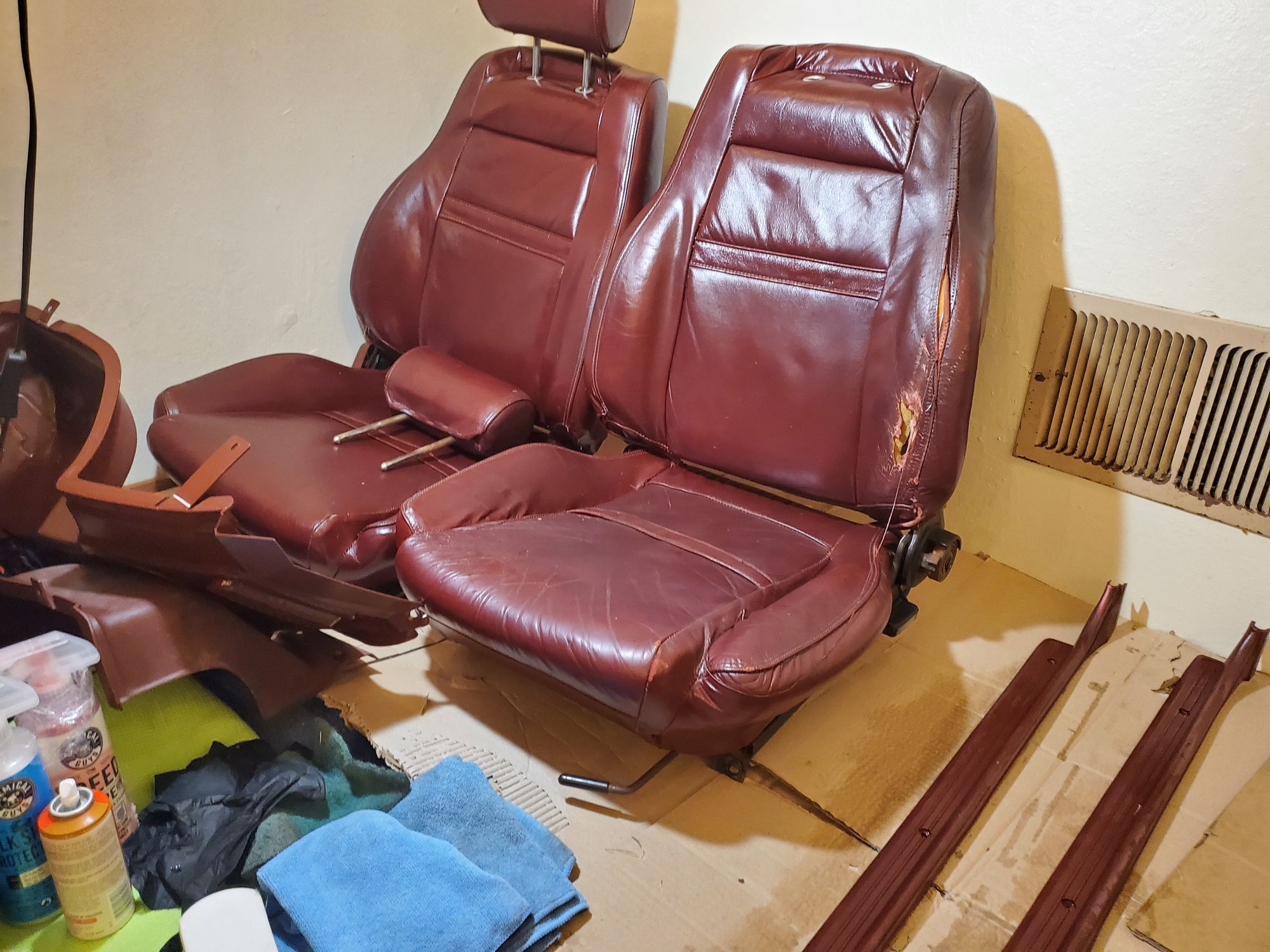As for your original question, yes I have heard of the SEM Burgundy, but it looks to be a darker color code from the original, and the only part I would feel safe using that spray for would be the elongated door handles. So I'm avoiding it for rn and hoping to leather upholster the piece that is damaged or does not have leather.
