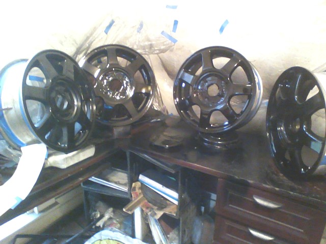 The original paint scheme from Honda was a clear aluminum with a grey side of the spokes. Much similar to the oe Mazda wheels. But I went with a semi-gloss black paint. My buddies suggest I need something to break up the single color like a splash of red on the sides of the spokes. I'm hesitant to add the same color as the body of the car to the wheels; it seems tacky. Don't know what I'm gonna do with them.