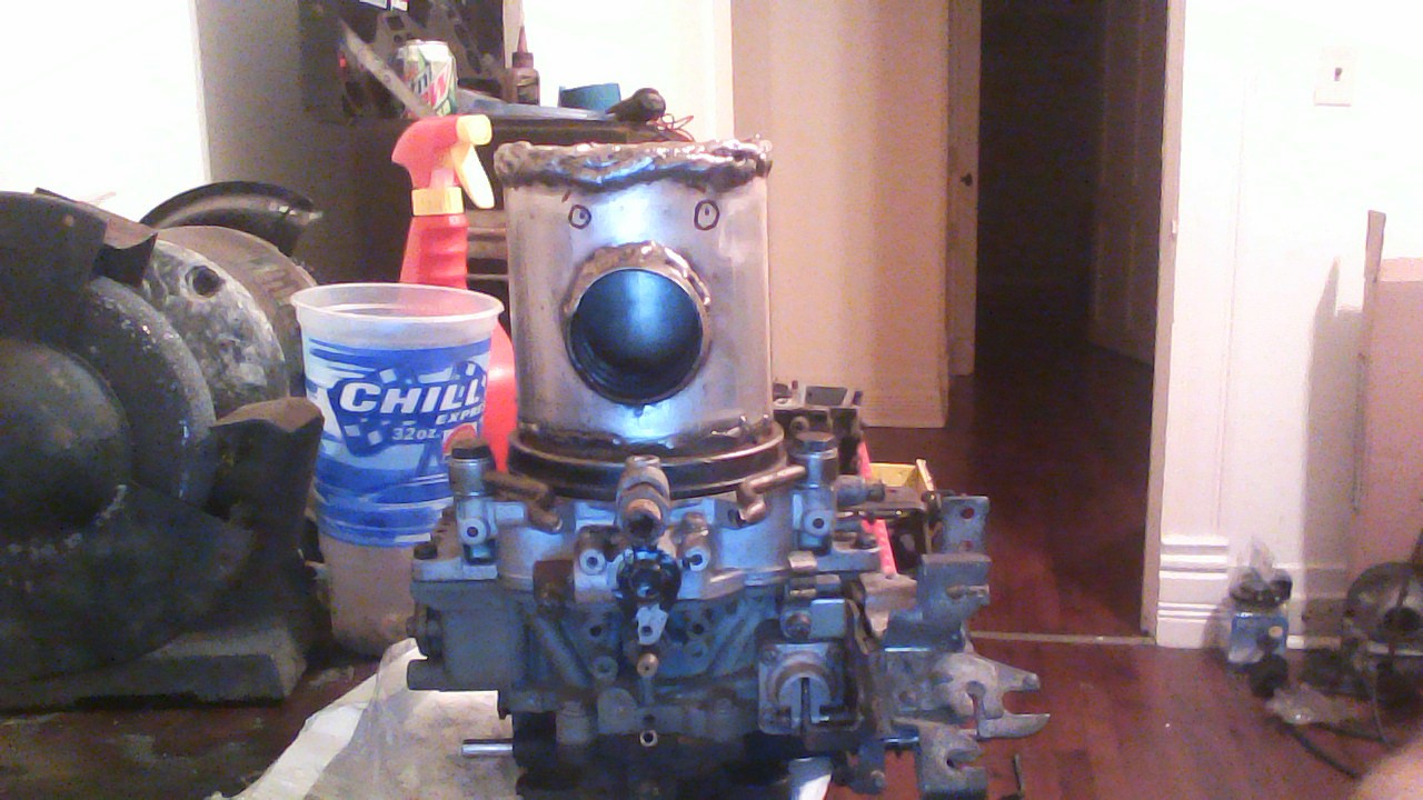 Na, I'm not done yet. I've gotta poke a hole in the top and run my 1/4 20 rod down in the carb. I got 1/4 20 cause Lows doesn't stock M8 threaded rod. So, I'll weld an M8 bolt to the 1/4 20 rod... done.