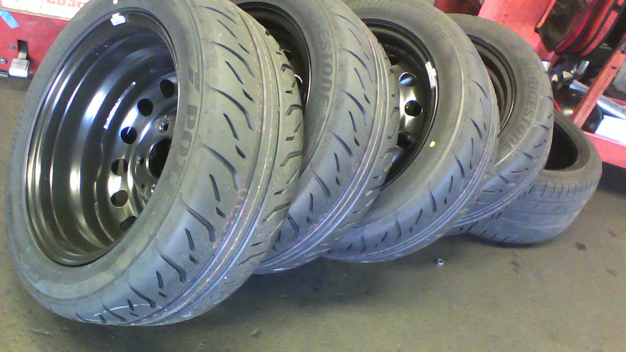 And the post man showed up with my new wheels and adaptors so I can put good name brand tires on my car.