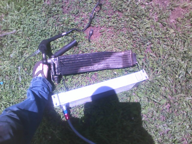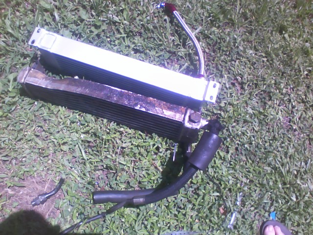 Driving the other day I noticed a lot of oil on the ground... It was time for my ancient oil cooler and lines to go.