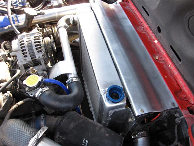 Recognize the custom first gen intercooler? Boy, did I catch flack for this one from the rotary guys who were sure I had to pay big bucks for a large audacious IC unit.