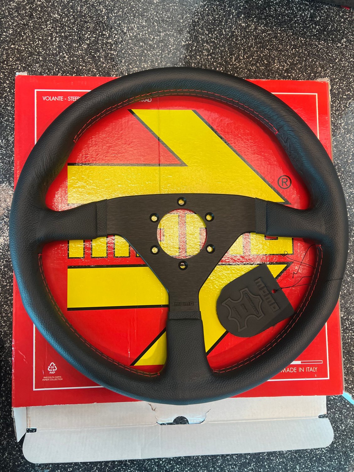 Things are starting to come together, finally got my momo steering wheel in. I ordered the 5705 momo adapter but it was out of stock so I had to go with a EBay boss kit. If it doesn’t work I’ll go with the works bell and just fork over the money.