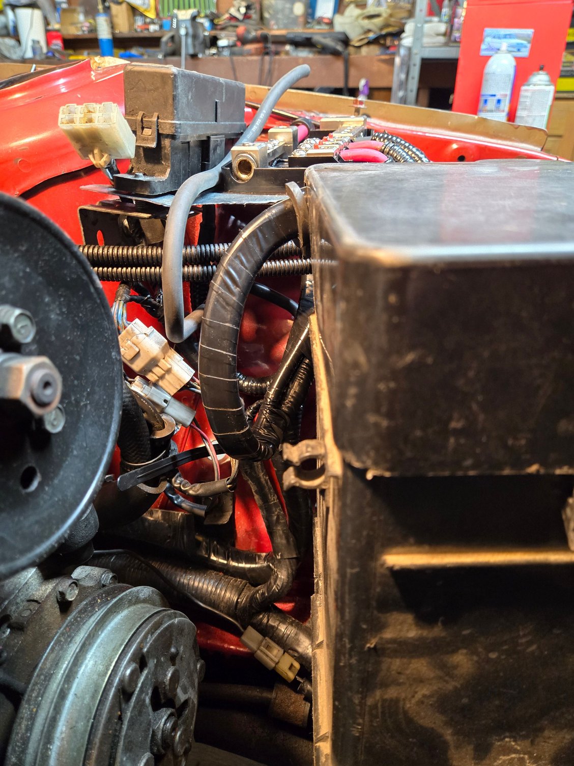 A proper splice is incredibly important. If this is done incorrectly, a loose connection will get hot and fail if your lucky. It will catch fire if you aren't. I will wrap it with two layers of rubber tape, two layers of friction tape and heat shrink. I just need to buy some rubber tape. The new spliced wire will get some loom as well.