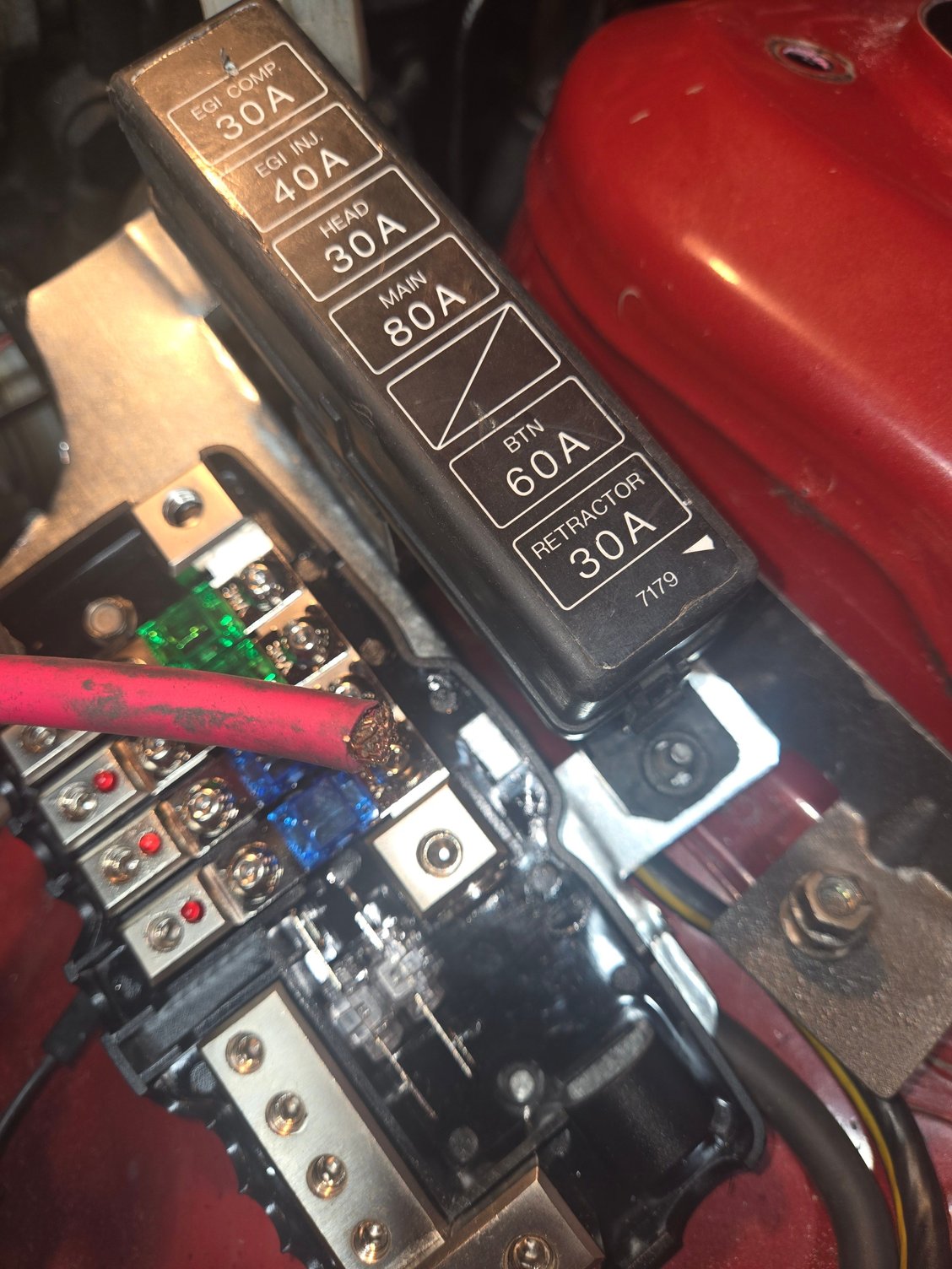 I needed to add a wire from the fuse box to the hot of the distribution block. I did not have an extra spot on the unused side. So this will be double fuse for now, I could remove the main fuse and move the lugged wire to the other side of the fuse block, we'll see.