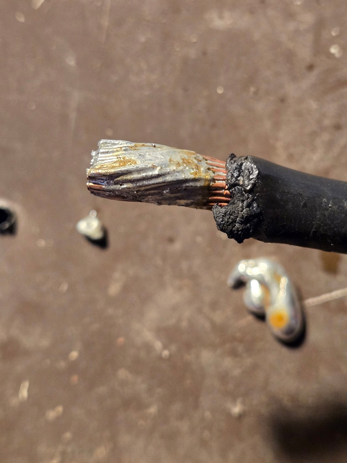 The solider stuck but The wire wasn't hot enough. I was smoking the insulation so i stopped. This looks pretty terrible. I did wire brush this afterward though.