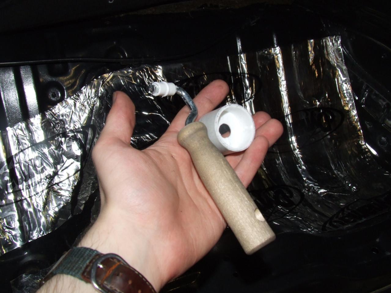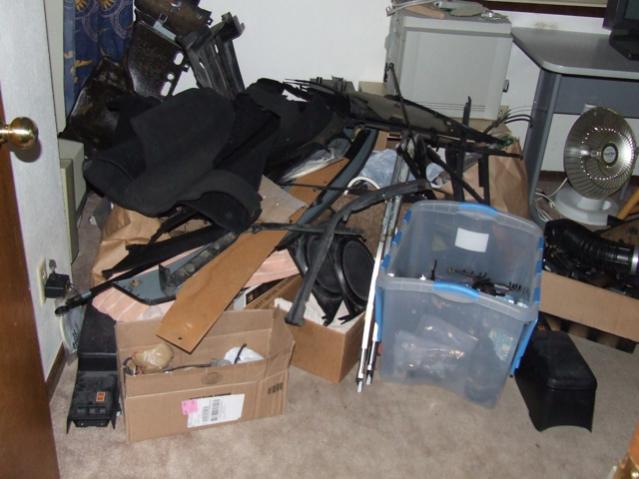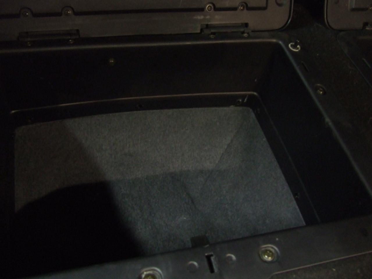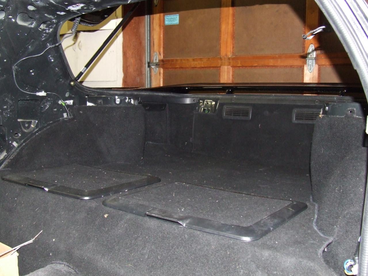 Since I got it, the sum of what I've done is: cleaned 95% of the floor boards, installed all the Dynamat except in the storage bins, installed the rear hard bumper mounts, set both hard bumpers in place [no idea where the bolts are yet..], put the pass. side wiring harness in place, and found the particle board wire guards.