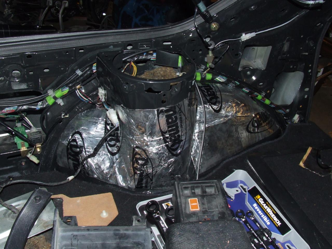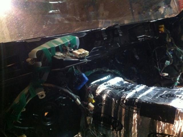 The Dynamat pictures are actually from back in Oct [11th] and the later few [Dash/seatbelts/heatercore] are from April 8th [Apparently I forgot to take pictures after I had laid the driver's side wiring harness :/]