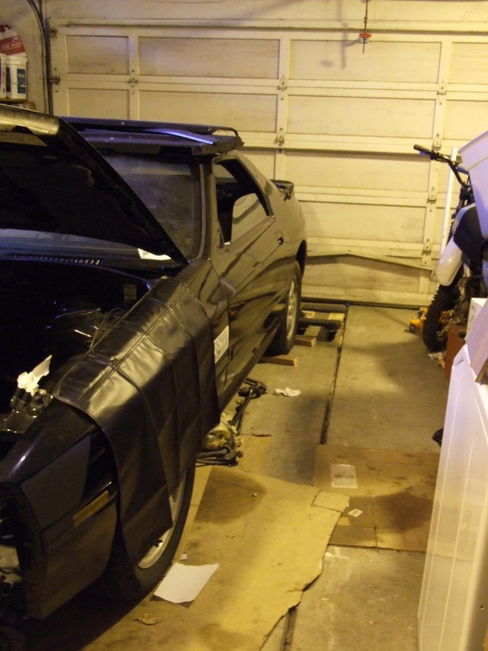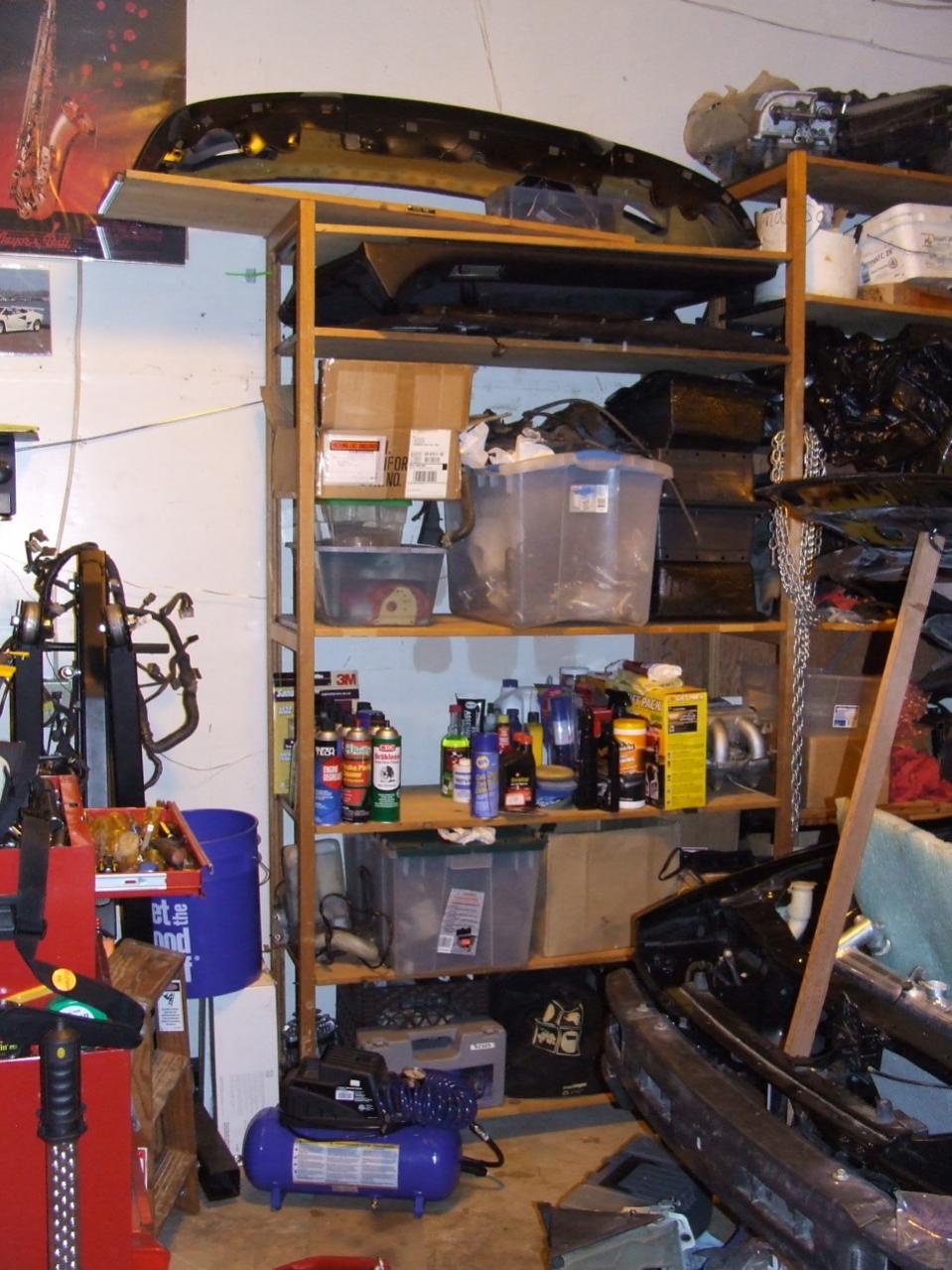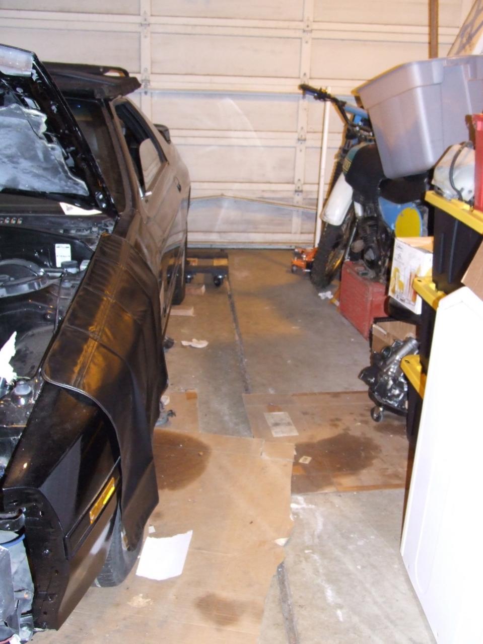 Over the last few days we got the garage cleaned up a bit and doubled the isle way next to the car, should help keep it safe [also putting the nosecone and spare door panels up on the shelfs FINALLY]