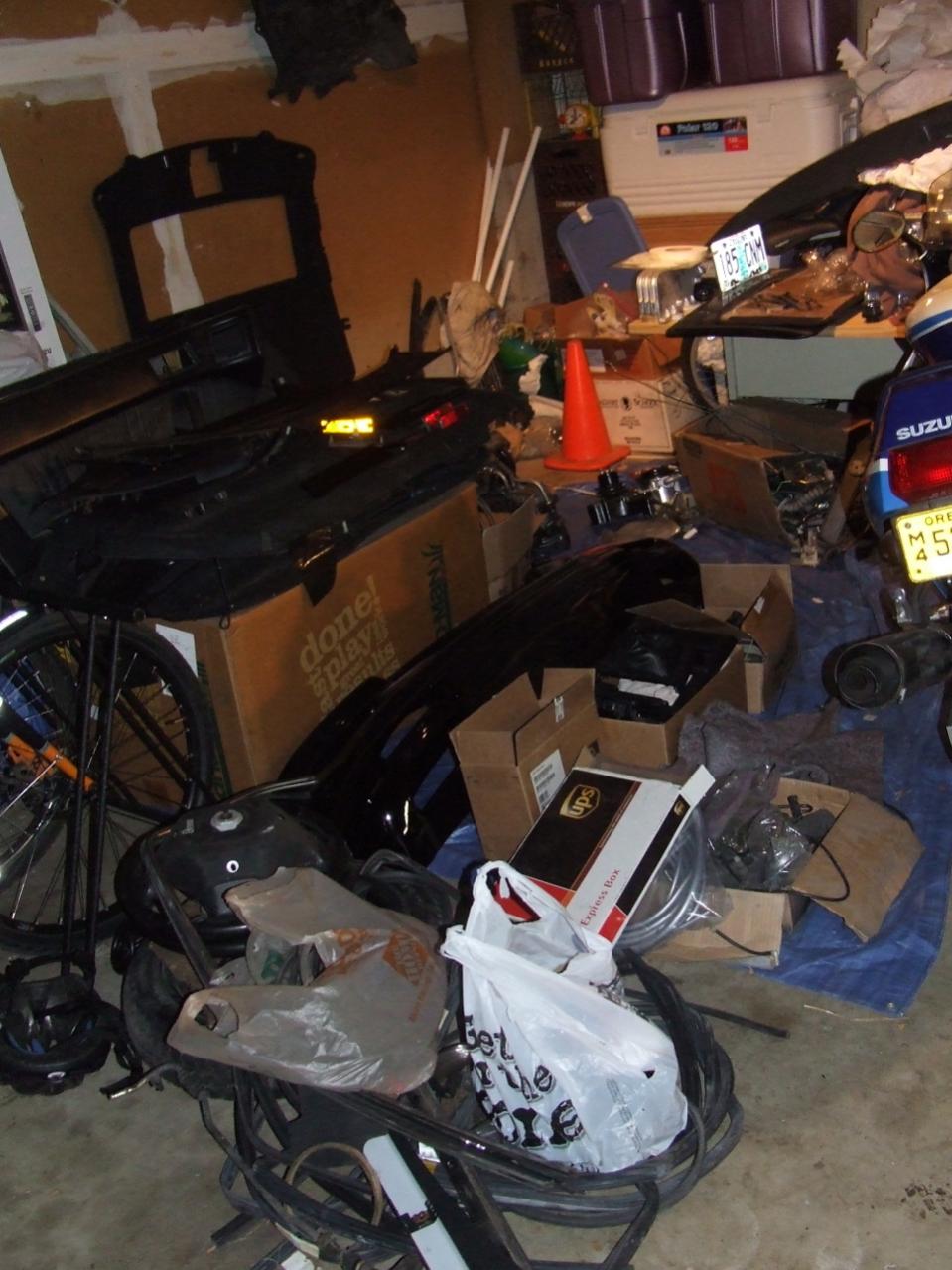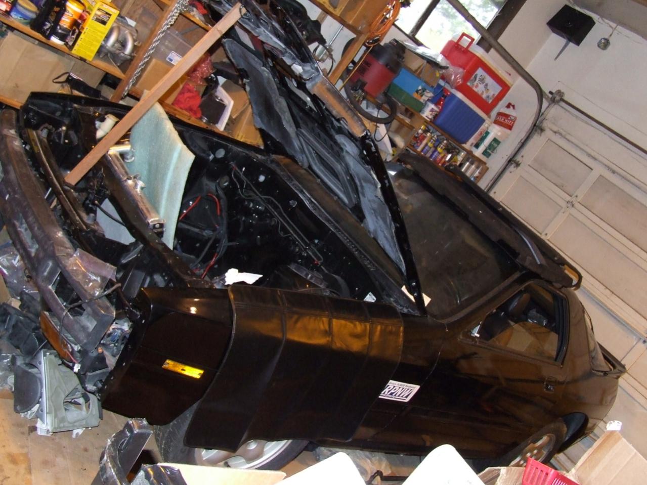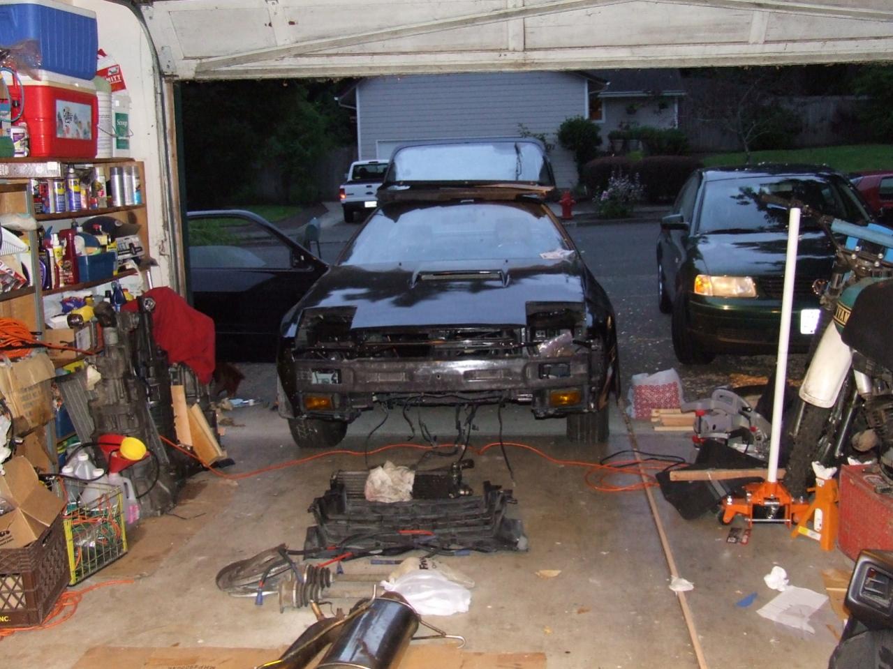 Over the last few days we got the garage cleaned up a bit and doubled the isle way next to the car, should help keep it safe [also putting the nosecone and spare door panels up on the shelfs FINALLY]