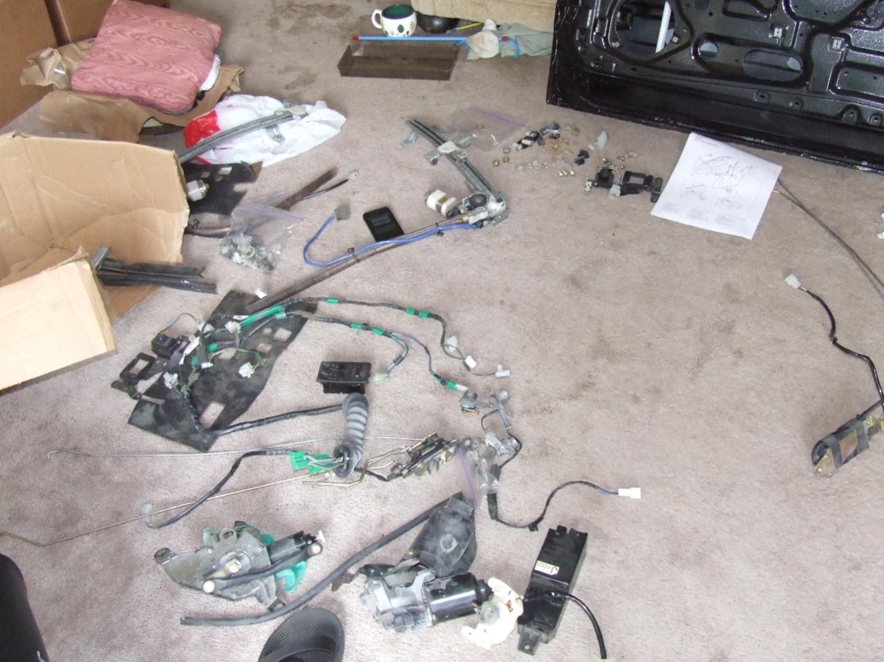 Both doors are are one [as of Sept 1st.. Kinda forgot to post there] and just tonight I managed to find the wheel key! Got all 4 locks removed, and I'm planning to roll the car outside in the next few days to get the diff/halfshafts changed and the manual steering rack installed B)