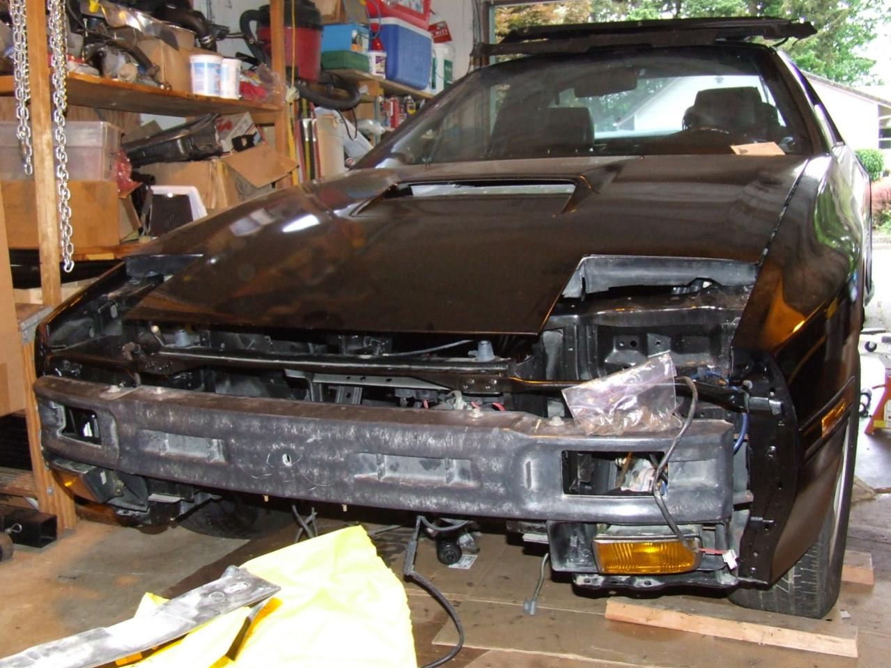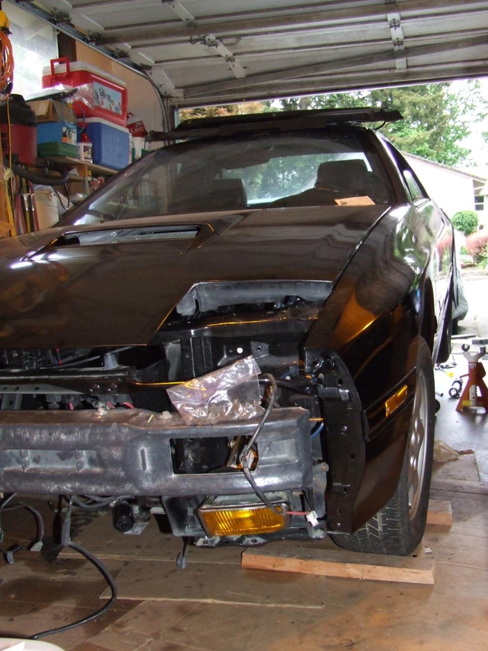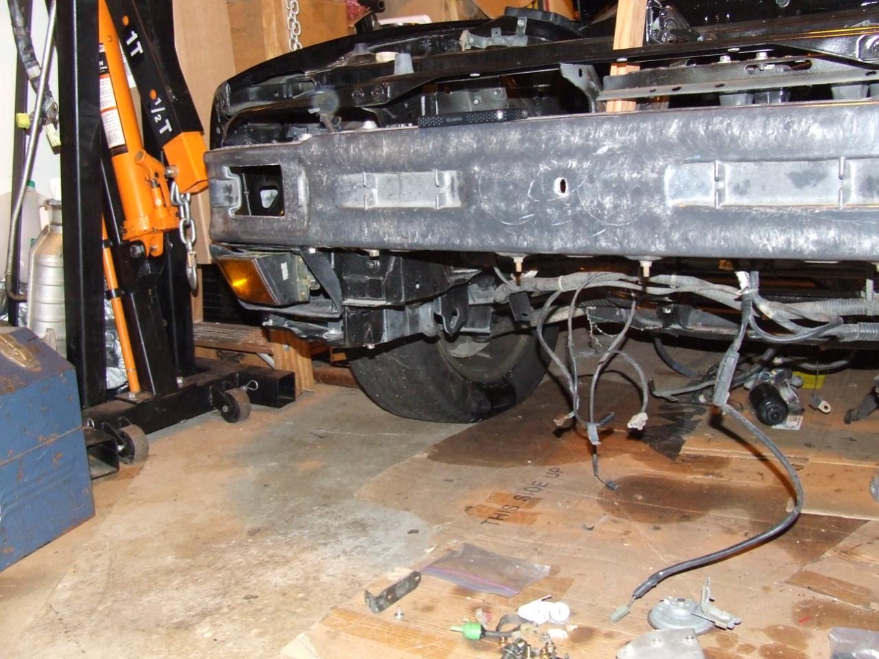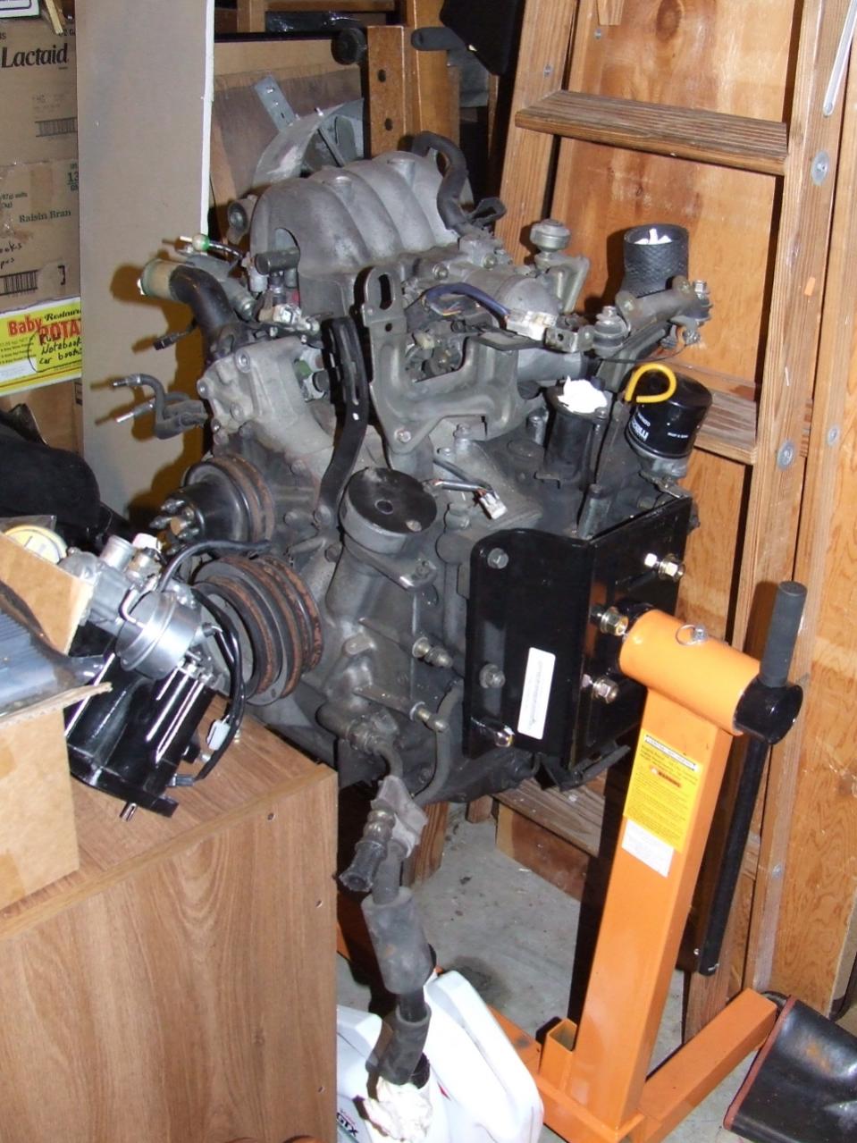 And then.. Engine teardown time! [Well almost, actually I'll get the hood on and the engine on the stand while the car's outside.. Oh and those pesky brake ducts/relays/horns/etc need installed..hrm....]