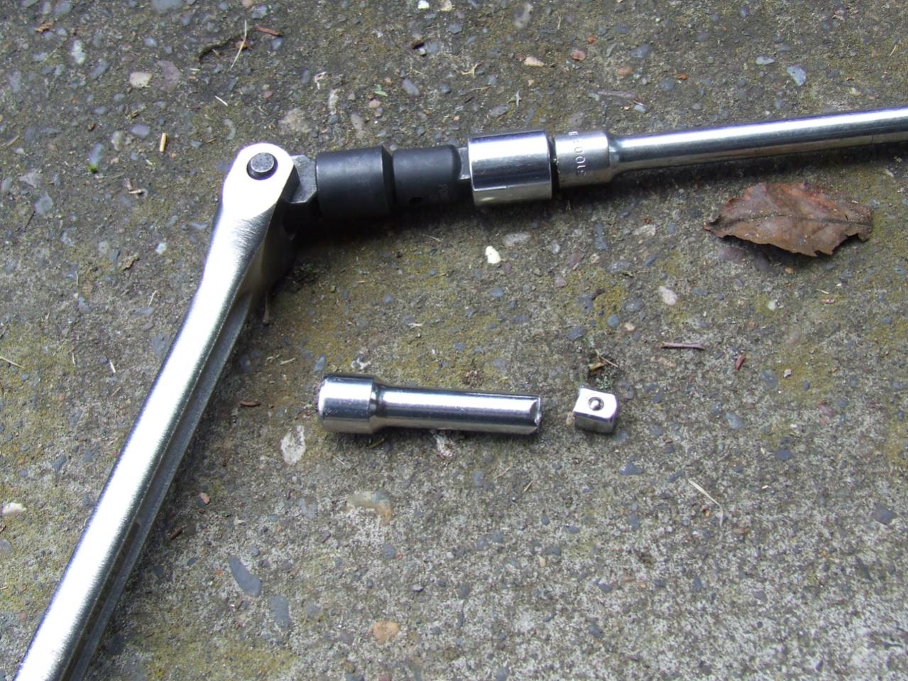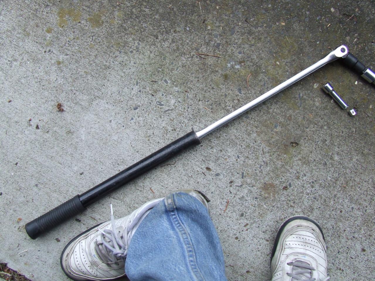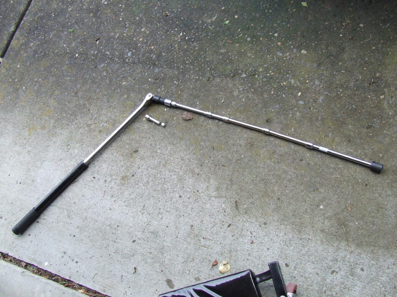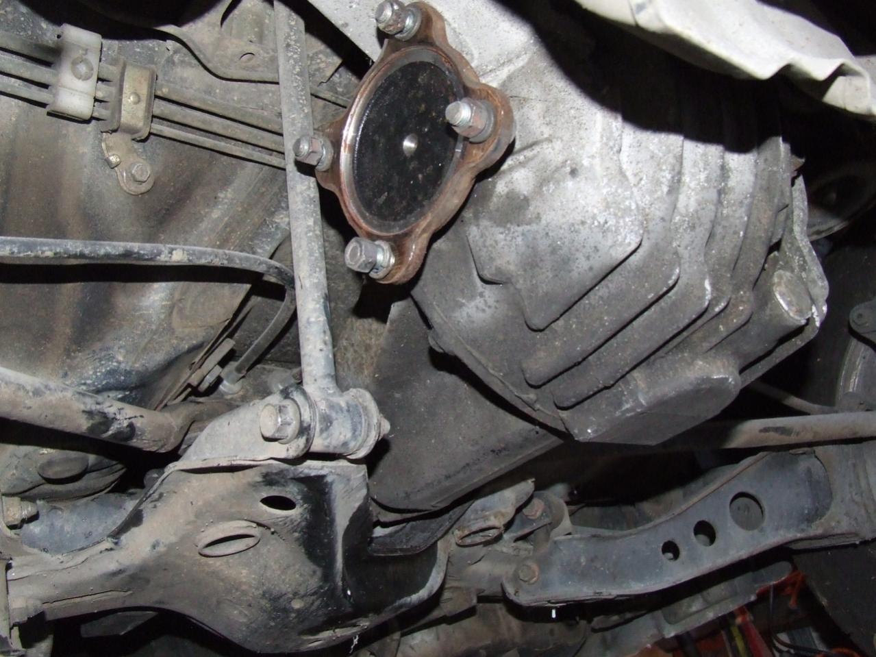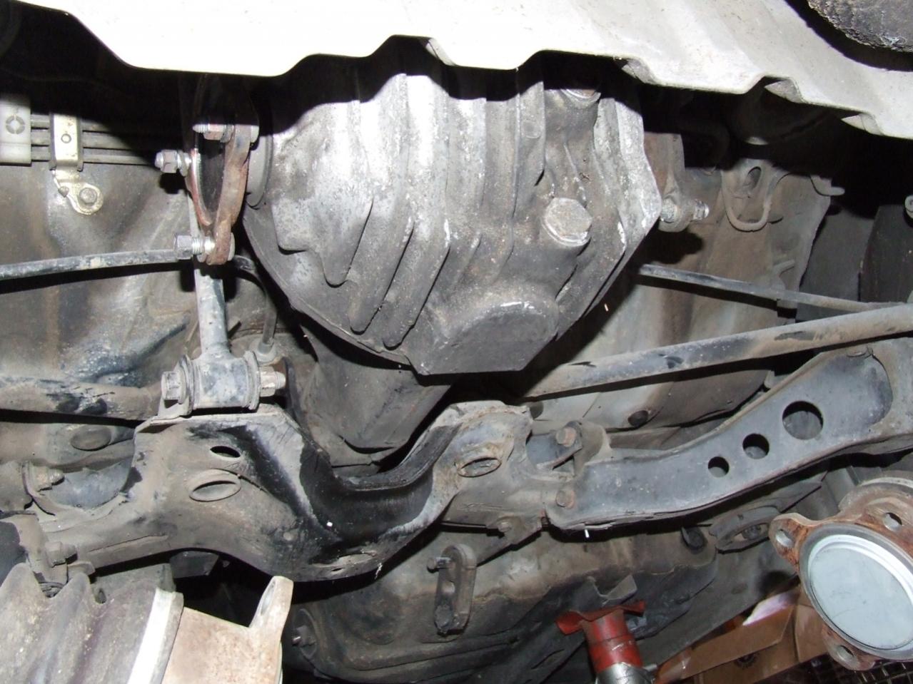 If you notice the ridiculously extended in two directions breaker bar.... That's what was necessary [along with my Dad lifting a few hundred pounds of pressure at the end] to get the rear front diff mount nut off..