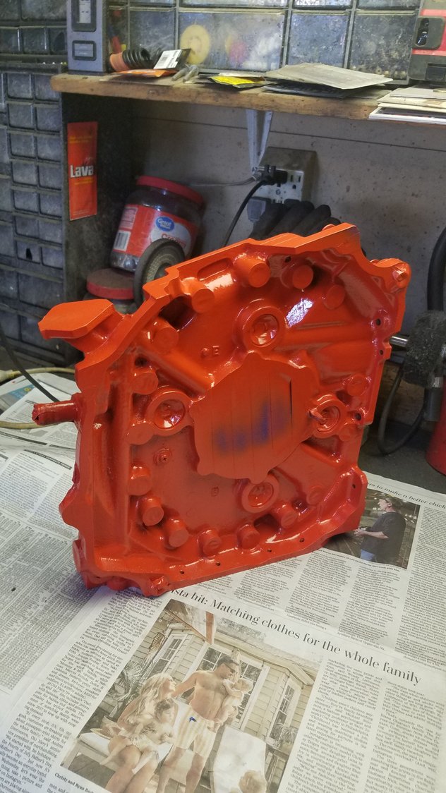Refinishing the intake manifolds. All casting flash removed and the middle manifold runners made to look like round runners. :-) Coated in Ferrari wrinkle finish red.