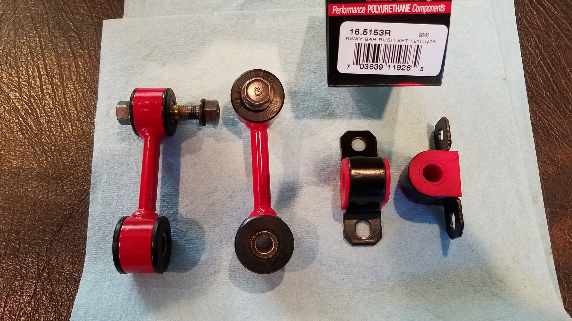 Cleanup of the rear sway bar and end links. Poly end link bushings. Why maintain the rear bar? When racing I simply removed it when using a bigger front bar, however, given I'm keeping the stock front bar I'l stick with the stock rear. But there's a twist! The stock rear bar on a vert is only 12mm vs 14mm for all the other FC's. Try finding a 12mm sway bar poly bushing! Almost impossible, I did end up locating a bushing made for a rear bar some older Honda Civic! A little grinding on the brackets and they fit just fine.