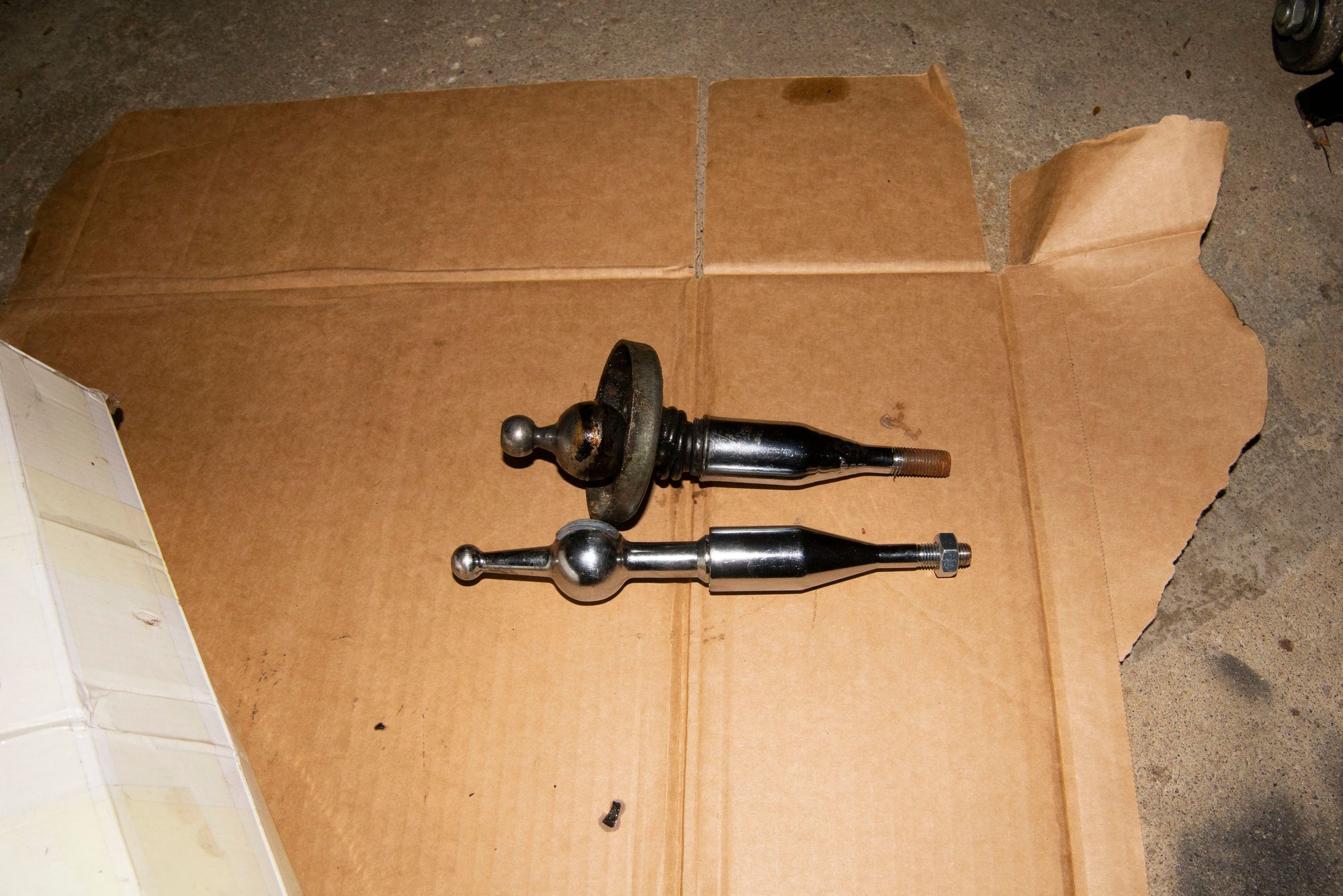You can see the difference. The short shifter has a longer arm for the pivot ball. This way the shifter (when installed with the included shims and barrel-thing) is raised up relative to the shifter housing and the throw is shortened. In my case, I need the short shifter to have a larger pivot-ball to match the Rx7 shifter.