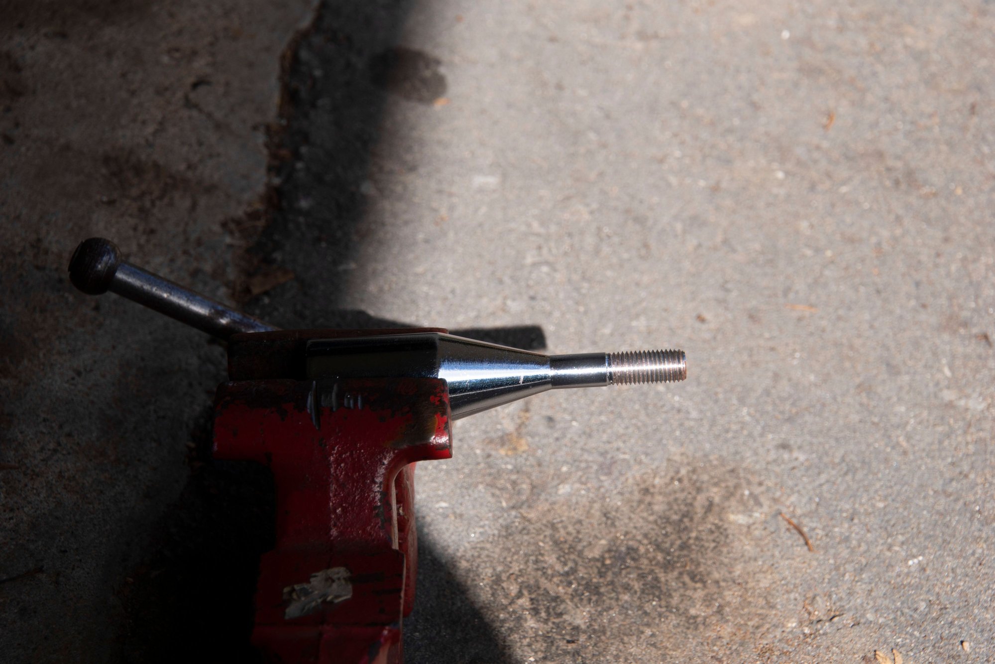 My first idea was to just tap all the way down the shaft of the existing threads, but then I realized the bottom part was too wide. Since I don't currently have a lathe I can't turn it down, so I moved on to the next solution: