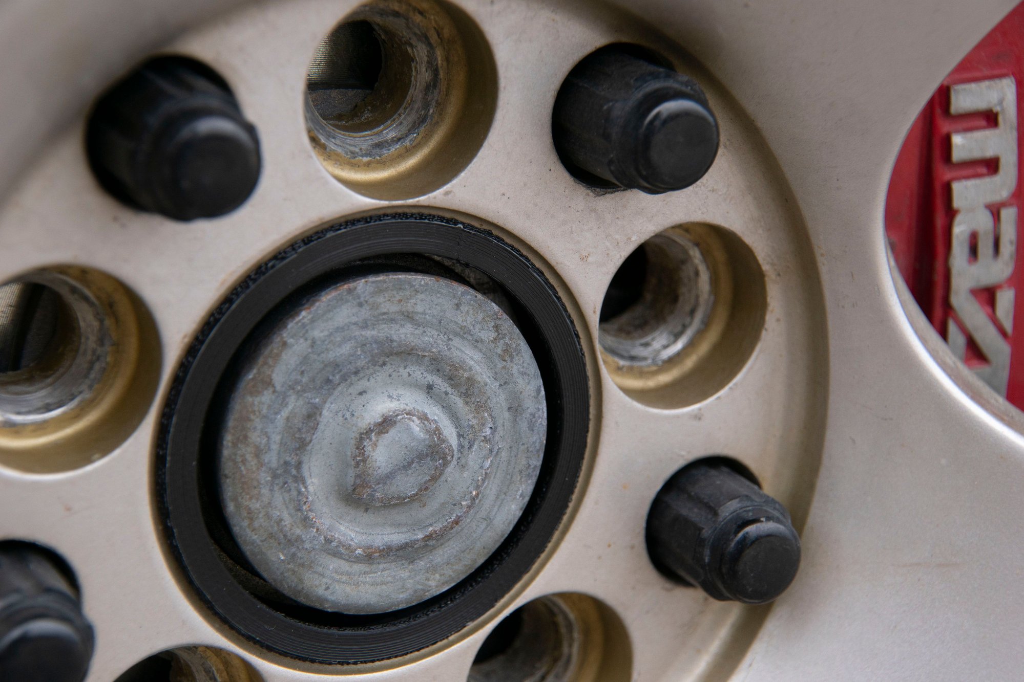 Next came the center caps. I found a set that I liked online, but it didn't include the measurements I needed to know if it would fit the wheel. I messaged the seller and there was no response, so I took a gamble. They ended up being a few mm too small, which means I need a spacer to make them fit: