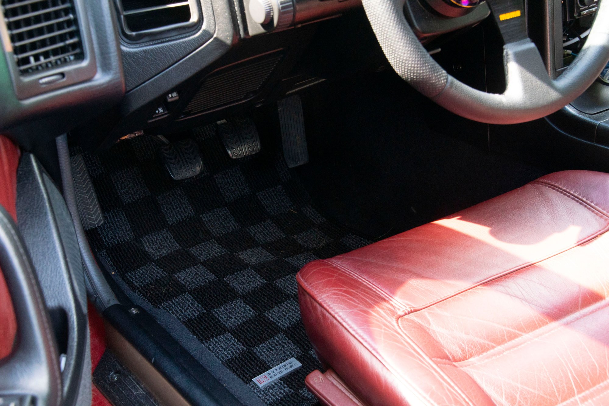 I also don't love the checker-board pattern. It would be nice on a stock grey or black interior but with the two-tone interior it contributes to the "busy" look I keep trying to avoid. But the next-up floor mat (Garage Alpha) that comes in plain black is significantly more expensive, so these are the mats I chose for the foreseeable future. They also cover the cut on the passenger side footwell carpet, which is the main reason I felt compelled to buy the mats now.