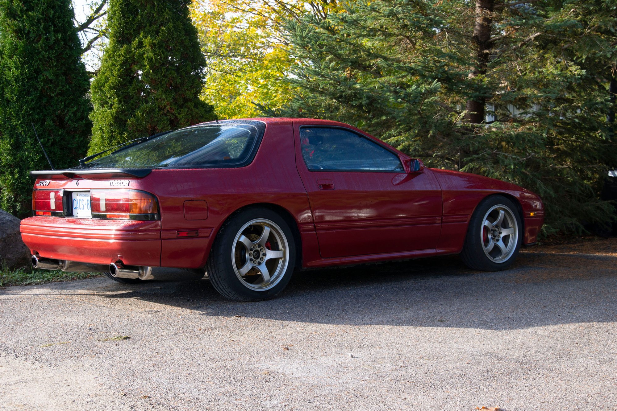 Unfortunately my Rx7 is living outside this winter. We only have two garage spaces (not that I'm complaining) and since I've been using one for 4 years for my Rx7 it's only fair my family gets to use them for awhile. Plus the Miata has a brand new top so making it live outside in the winter (even covered) seems a bit harsh.