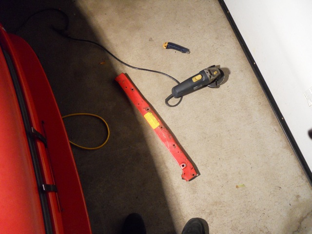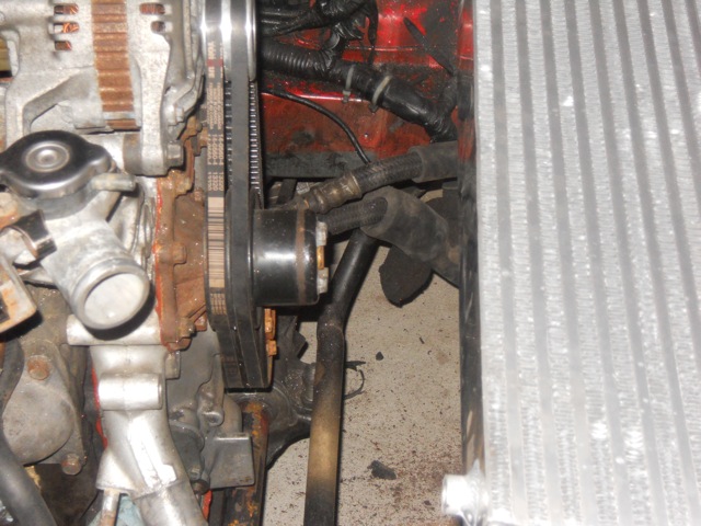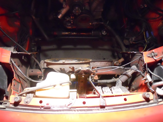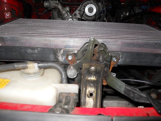 first thing first i had to make a little room for the intercooler so I cut out the front brace that the latch bolts to and the top corners of where the rad mounted