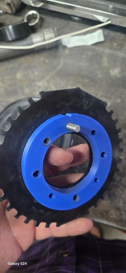 I have a gilmore setup on my car so i had to create a spacer that sits into the crank pulley then mount the trigger wheel. I also made a centering stub that centers off the crank hub.