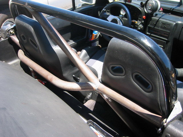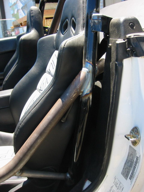 You can tell where the new tubing was installed. Diagonal bracing, harness bars, door bars w/ braces, gusseting at the tabs where it bolts to the b-pillar. All welds have been TIG-welded.