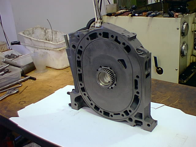 Ahh so that's how they did it. The stock center plates have a round opening. I wonder how they keep the gear from rotating when inserted. Also it's odvious that the 4 rotor above has custom made extremely long tension bolts. I don't think they would fasten the block together like the way a 20b is with front and rear bolts since the center plate is so thin. They must have a ton of dowel pins to keep the block from twisting.