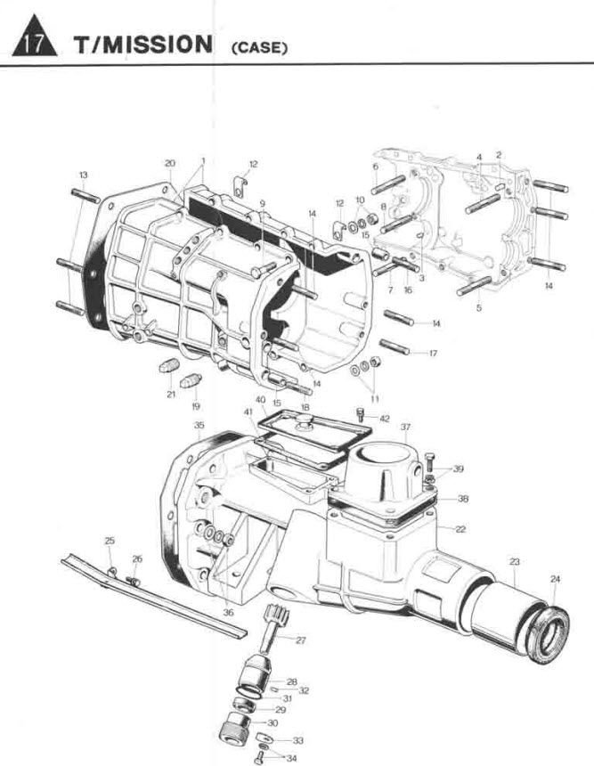 The next transmission is called the Ribcase. the case is ribbed. These have a removable bellhousing, and a flat bottom pan. Used in the Rx2,3,4,5 and Repu. came in 4 and 5 speed versions