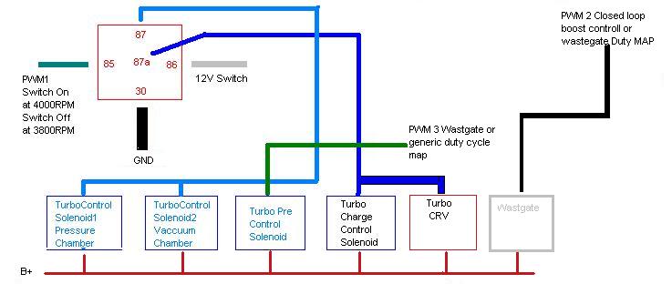 He's talking about the pre control, I since altered the original design so that all 4 turbo control channels are controlled of a single channel or a single solenoid (no half NO and half NC) its just a matter of changing how the hoses are hooked up.