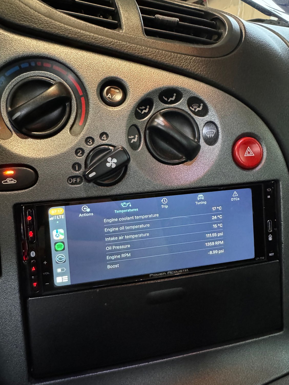 With the goal of specifically using CarPlay I am using OBD Fusion since it has a CarPlay app. I got an amazon Bluetooth OBDII reader connected to the Haltech OBDII cable. The OBD reader connects automatically. OBD Fusion lets you customize different pages of data to view in CarPlay and you can also view DTC codes. Just can’t clear codes from the CarPlay app yet. I can clear the Haltech codes with the phone app though, so no need to drag out the laptop anymore.