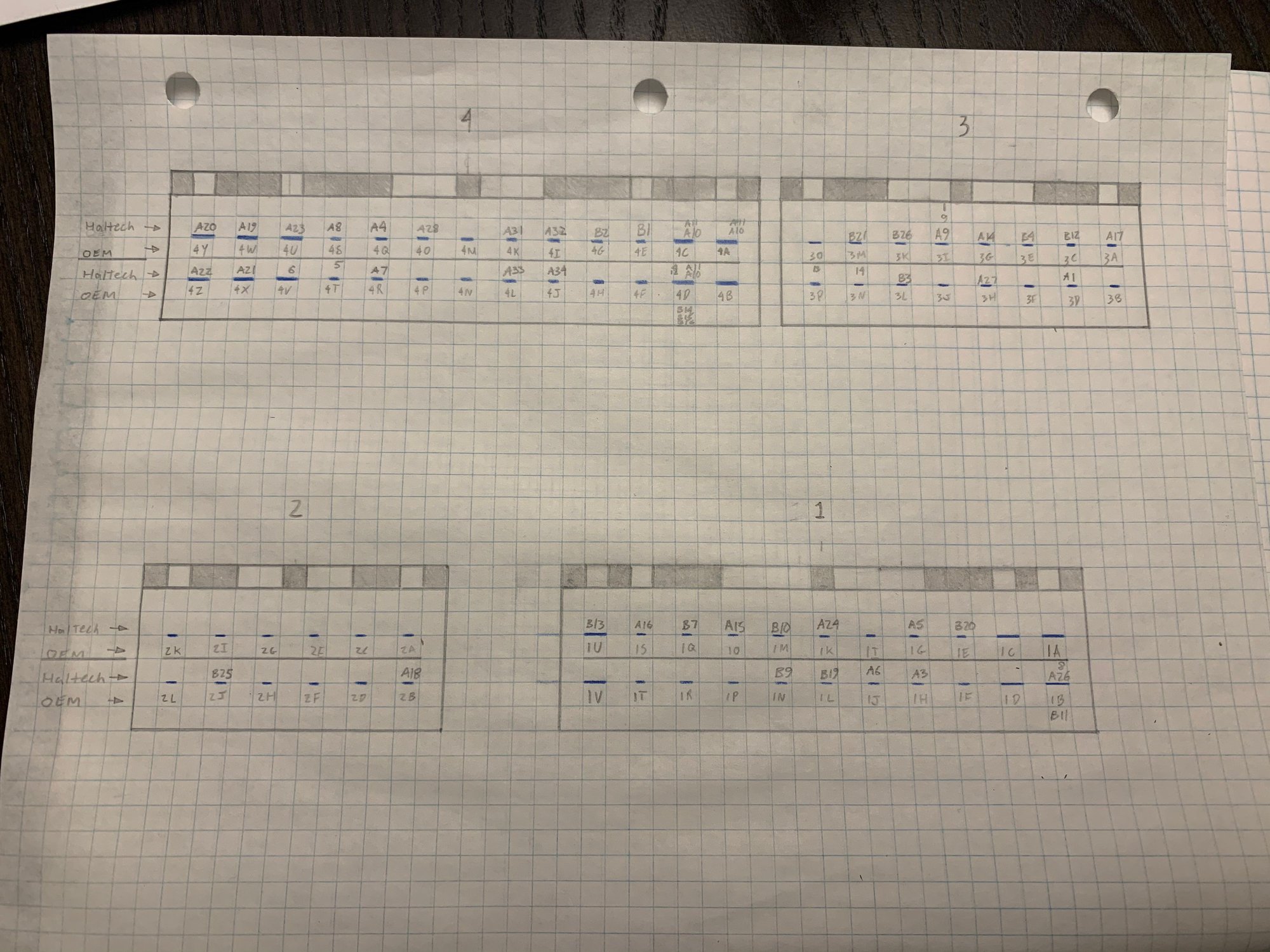 I ended up sitting down with a multimeter and figuring out which pins were which. I couldn’t seem to find a clear pin out that matched. This is what I came up with. I was just looking for references from the Haltech pin out to the oem pin out. Also thank you for the heads up.