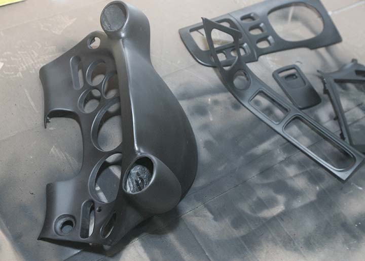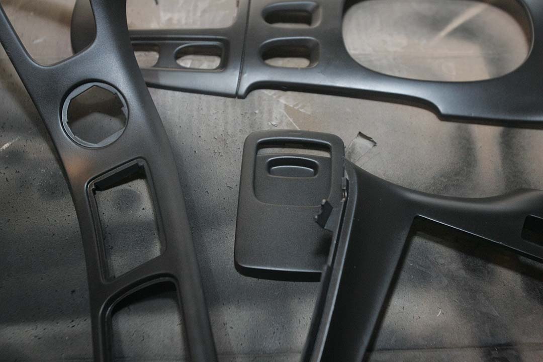 First pic is the finished "rubberized" panel next to the stock cluster panel....