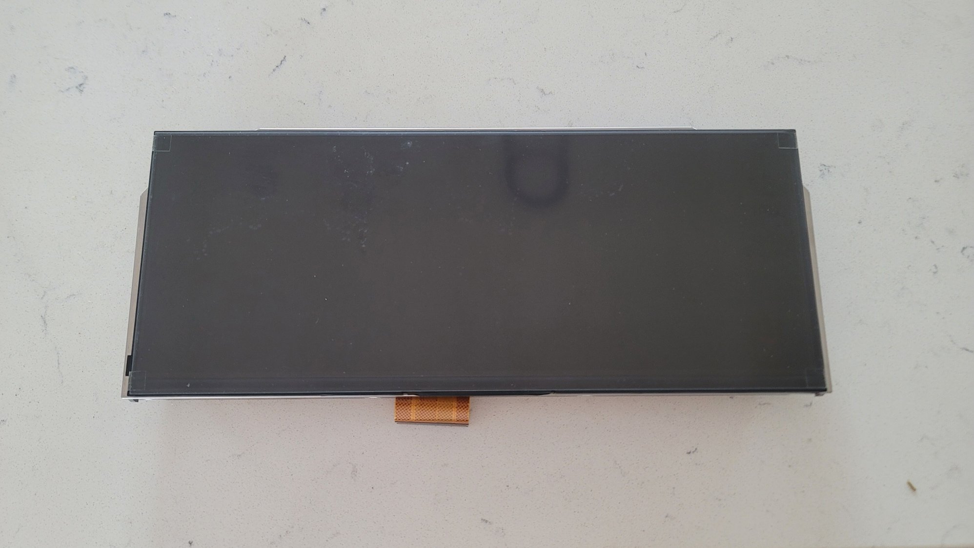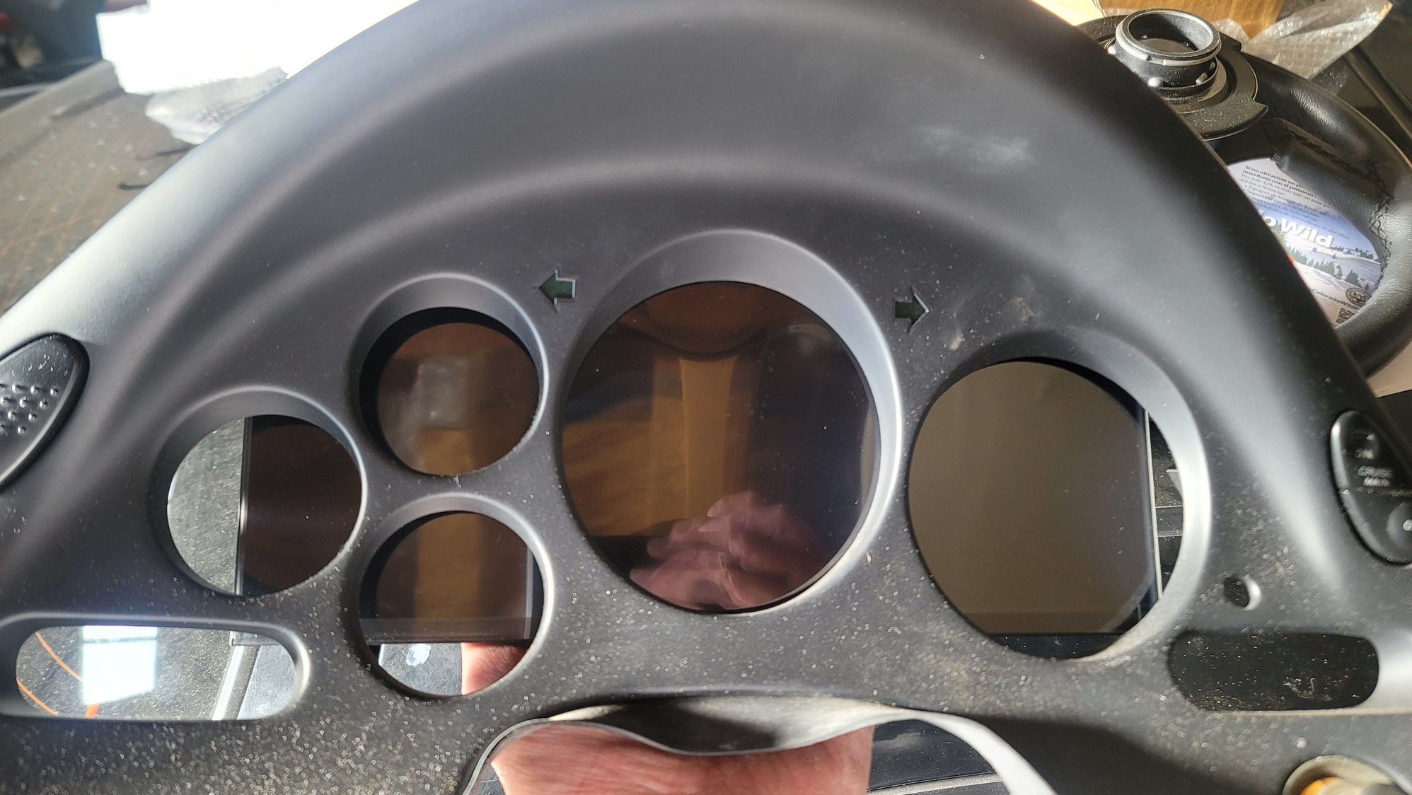After disassembly I could see that the screen doesn't actually go to the ends of the cluster like I thought, and the frame around it takes a bit more of the viewable portion away, but it's still not bad. I do wish it was a bit longer, but it's sized pretty perfectly for our gauge hood. Looked at the smudges on the screen, you can see just how much is covered. It's not near as much as I thought.