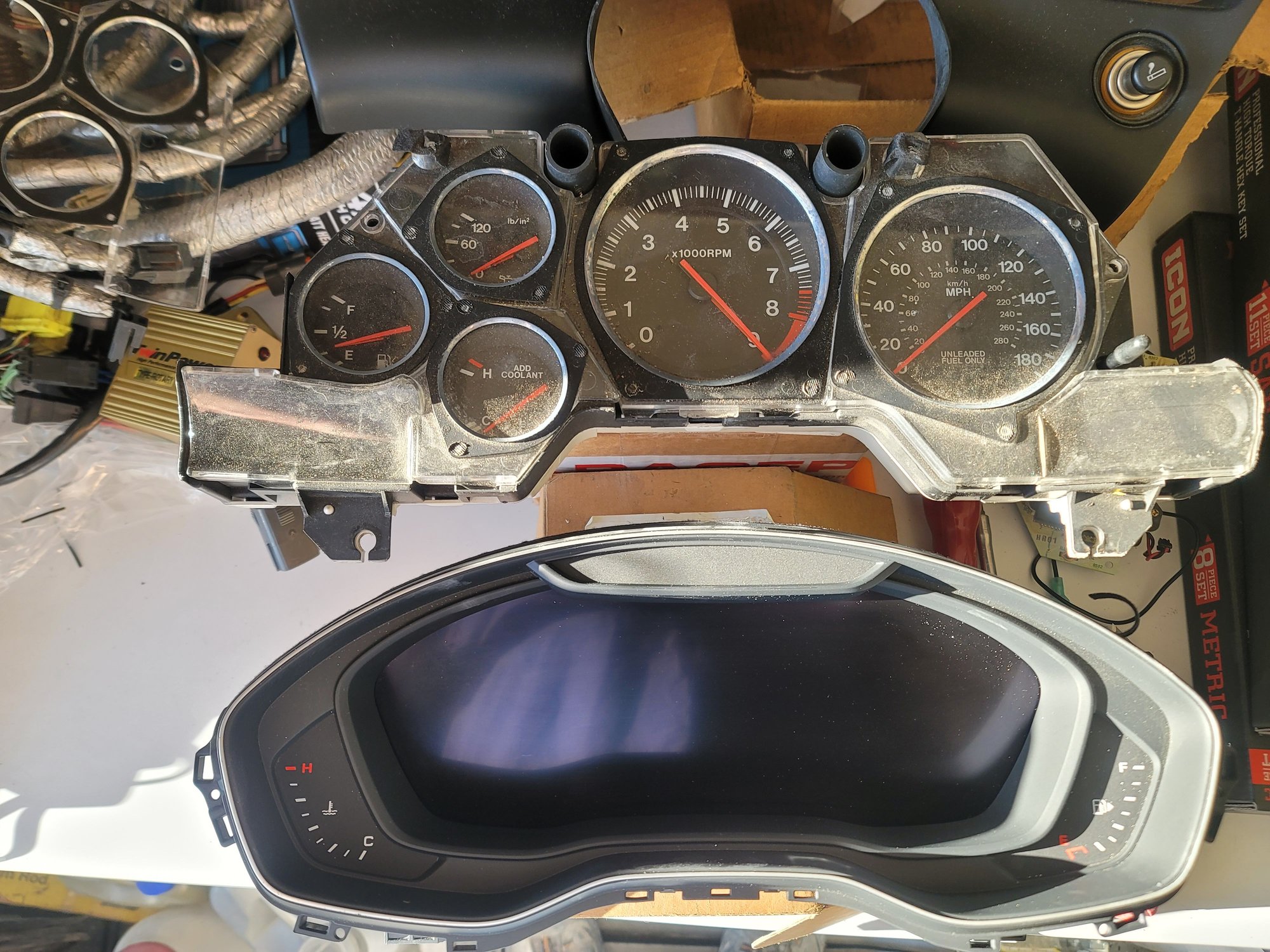 I'll try to keep the backstory short. I've been using Speedhut gauges with a couple Spa dual gauges, all mounted in the original cluster. One of the Spa gauges died, and I figured I'd start looking into options for digital displays so I can get ALL the info in the cluster.
