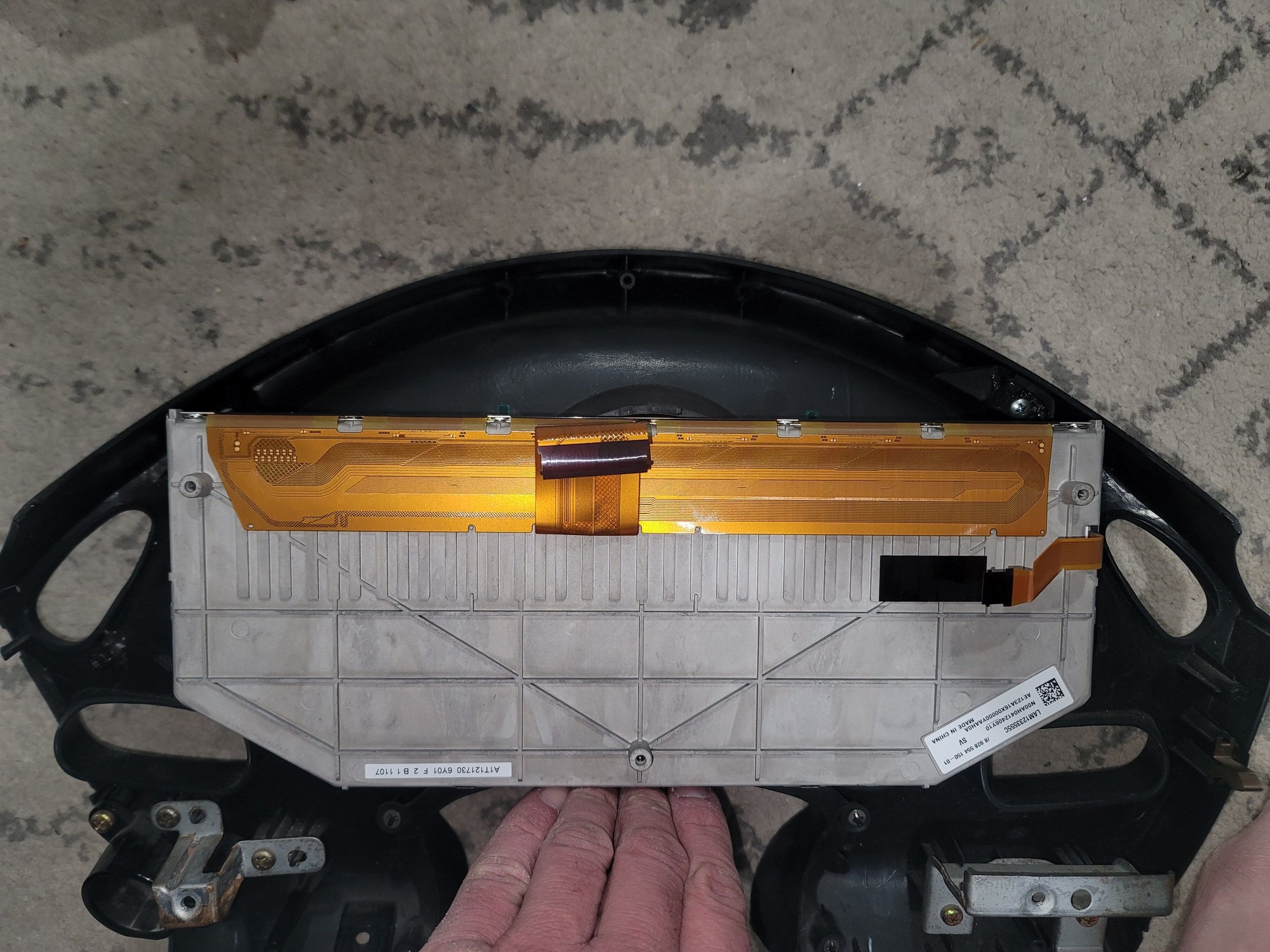 I was thinking about just getting the screen, but the inner part of the Audi cluster would be good to use to give it some depth and a clean mount to the stock face. I think the part with the fuel level and coolant temp gauges might make it a little too long anyway. OneGauge told me I'd need the whole cluster, but it's pretty thick and I don't think it would fit, but maybe trimmed down, or if I can do just the display and the front piece, I think that would fit. And the display has a ribbon, hopefully the same type that are used with aftermarket PCBs. We'll see.