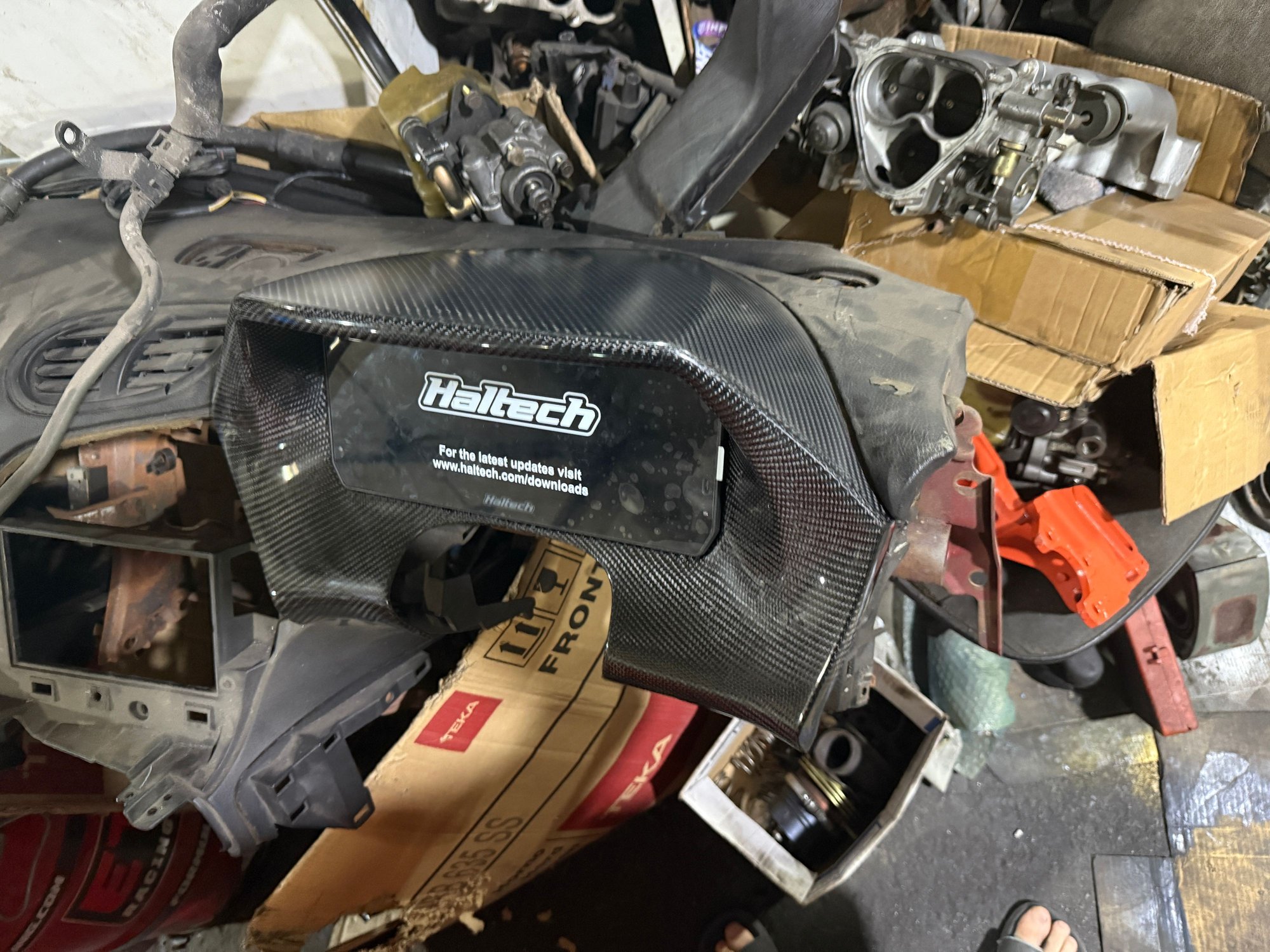 OneGauge sent me another update today and everything is working now. The temps are still slightly slow, but they're much better than they were. They look like they're updating every few seconds now at least. AFR is still a bit slow. They're looking into that more, but so far stumped as to what the issue could be because they said Haltech comms are always fast. Full tank reads a bit high still but I honestly don't care at this point lol, at least it reads zero at empty. EGTs and the ambient and intake temps were a few degrees off from what the ECU read when the key was to accessory before starting it, but I'm not too worried about that especially since EGTs will be so high anyway, a few degrees doesn't mean much at that point. My fuel pressure is reading a bit low because I guess the graph I used for the sensor I'm using wasn't perfectly accurate, but the gauge matches the ECU. I put a mechanical gauge directly off the FPR where the pressure sensor is mounted and the gauge reads 43 while the ECU says 36ish. Pretty much all the gauges (other than the temps I mentioned before) read spot on or within a number of what the ECU says. The odometer is constantly running codes currently, OneGauge is using that info to troubleshoot the slow gauges. Of course after all of this is sorted, I still need to finish the gauge hood with filler and paint. I didn't see the point in doing that while I was still removing the dash piece on a regular basis. My interior has been partially disassembled all summer because of this.