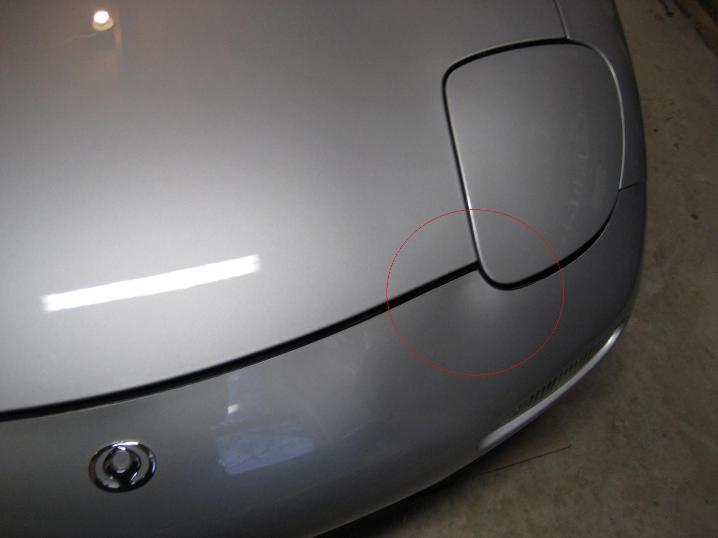 i know the car was in a fender bender so its had some front end work. if you take a look at the picture you will notice in the circle a "dimple" like indent near the headlight. its like that on both sides so it doesnt look that bad but i dont think its normal.