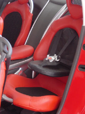 The interesting and innovative thing about the seats was the mesh seat section and the leather/tube frames. From a design standpoint the kids seat is pretty interesting. Practically and legally not such a good idea. Better to off-load the liability to the cars seat manufacturers.