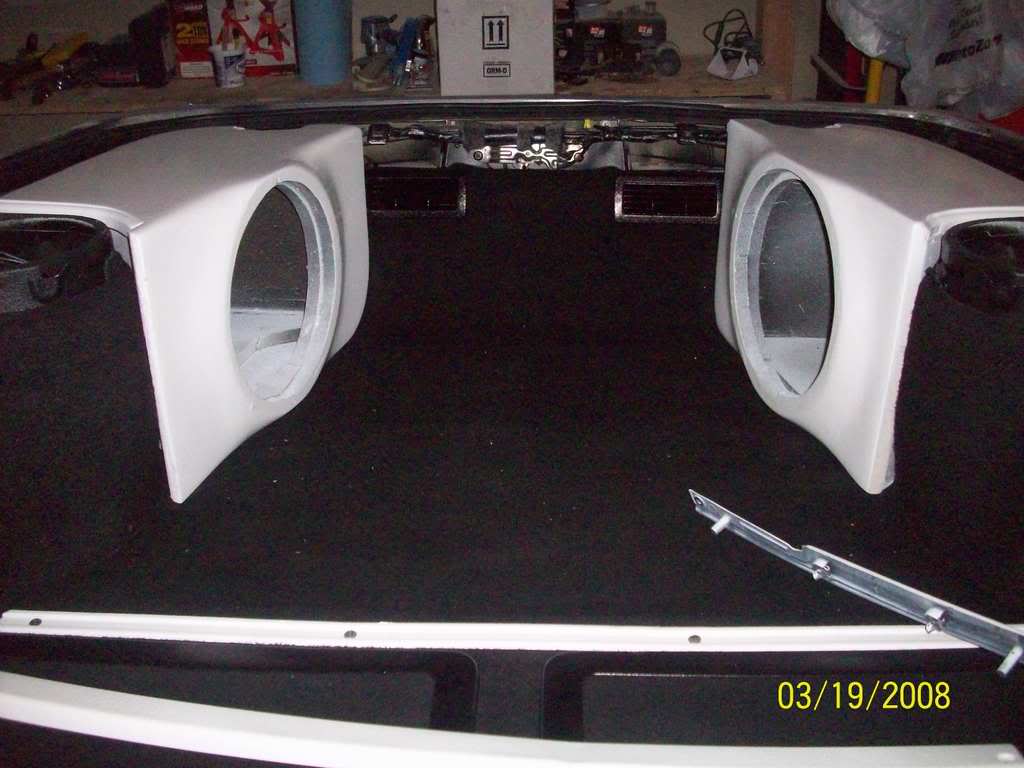Just a suggestion, I've done a few of these. If you want it to look "cleaner", but don't want to redo it or have to do alot more work, just do a little patching/build up on the edges so they are a little smoother, pick up some 1/2 inch foam at the fabric store and a can of 3M adhesive 90 I think and a peice of vinyl in a color that matches your interior. Spray the front and sides of the box with the adhesive as well as the back of the foam and press on. It tacks up and dries quickly. Trim out the hole, and the edges evenly. spray the face of the foam and the back of the fabric, then lay fabric over the box, pulling tight and working out anycreases as you go. Hot glue or staple fabric to the rear, trim excess. Use a razor knife end carefully cut a crosshatched pattern across the hole area, trim loose ends. Set woofer back into place, it will pull the fabric tight around the hole and screw it down. Now it's cleaner looking, you won't see any of the fiberglass imperfections, you don't need to paint it, it's washable and if you matched the fabric well, it will even have a "stock" appearance. Cost is minimal, and effort isn't bad, an hour or two.