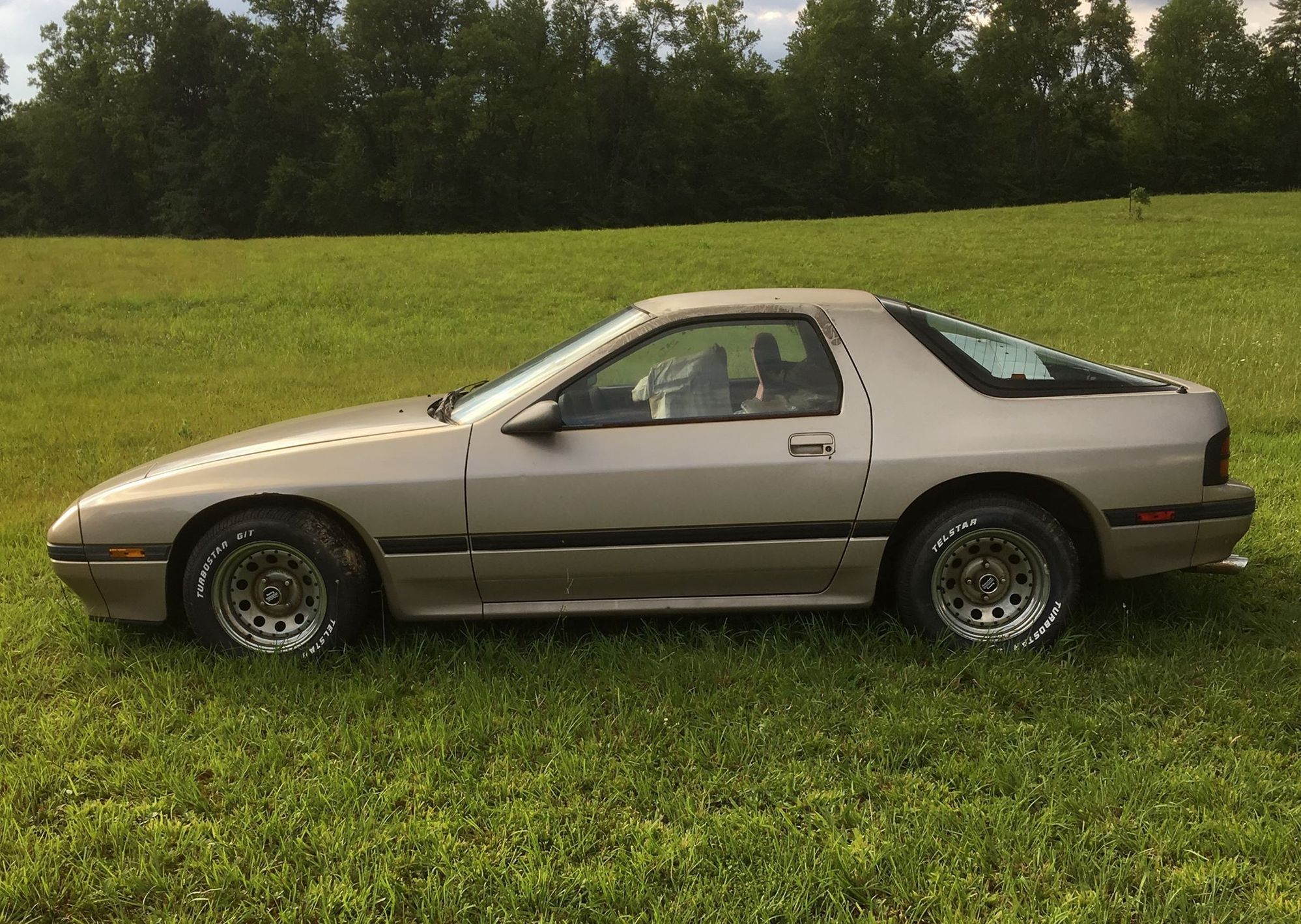Now, I'm selling my 99 Miata Death-kart when I get a message about a guy wanting to trade a non-starting 87 FC NA Gold coupe.