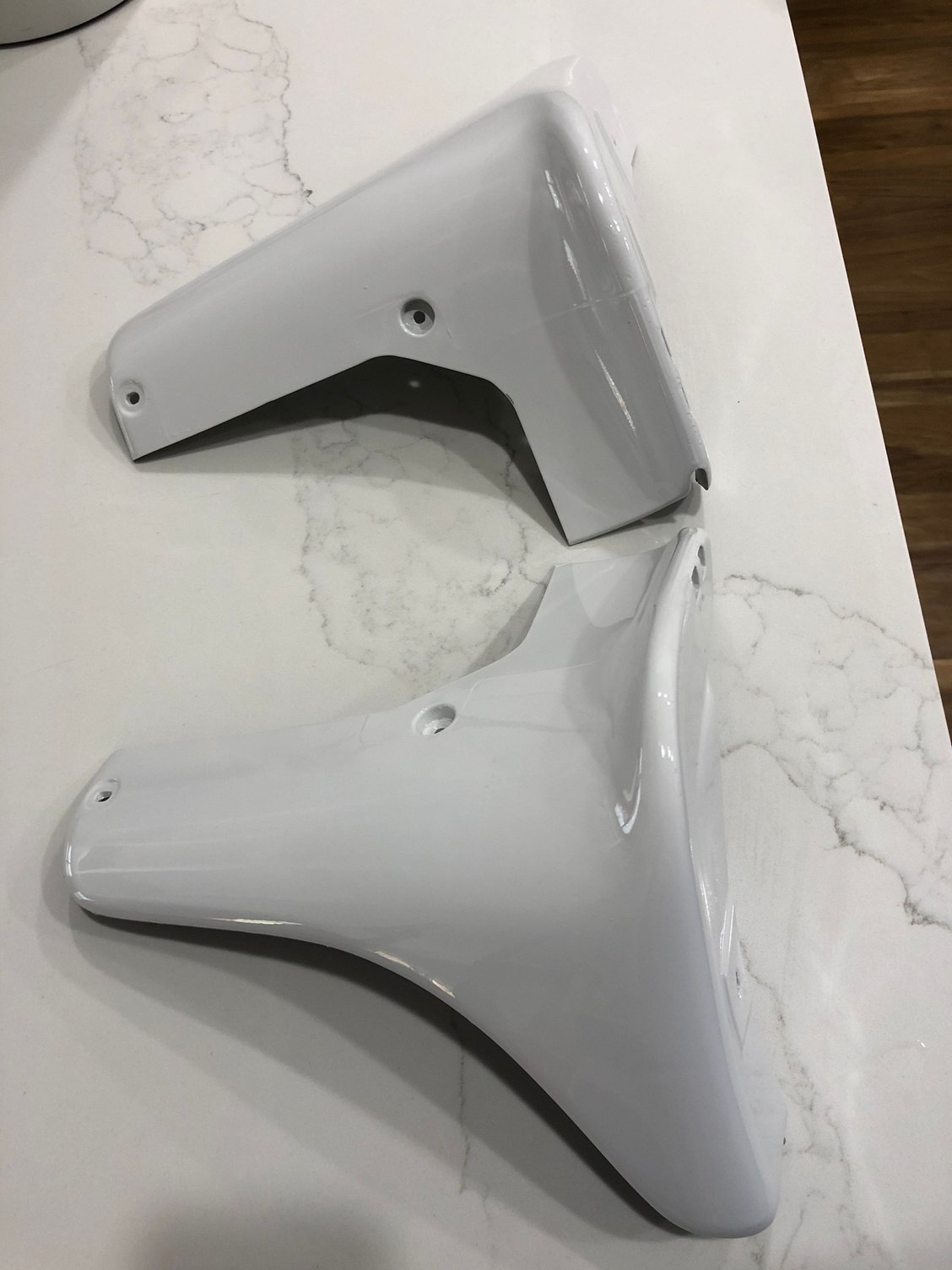 set of front 2. painted mazda pure white. came with my car when I bought it from previous seller. They were not previously installed when I bought the car, I installed the rear 2 on my car and painted all 4 at the time.