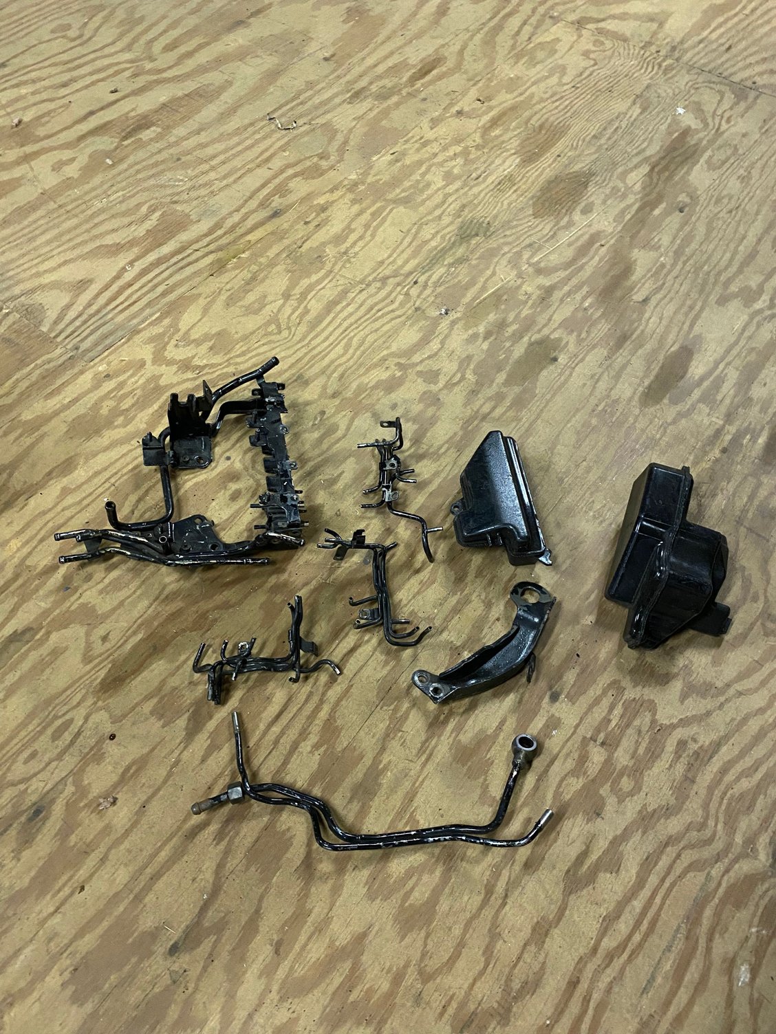 This is the odds and ends I have in the bin. Vac and pressure tanks have broken tabs but do mount and hold pressure fine. You will need a couple screws to reassemble the rack but it is complete. Just want it to go to a good home. $ 25 bucks and you cover the shipping.