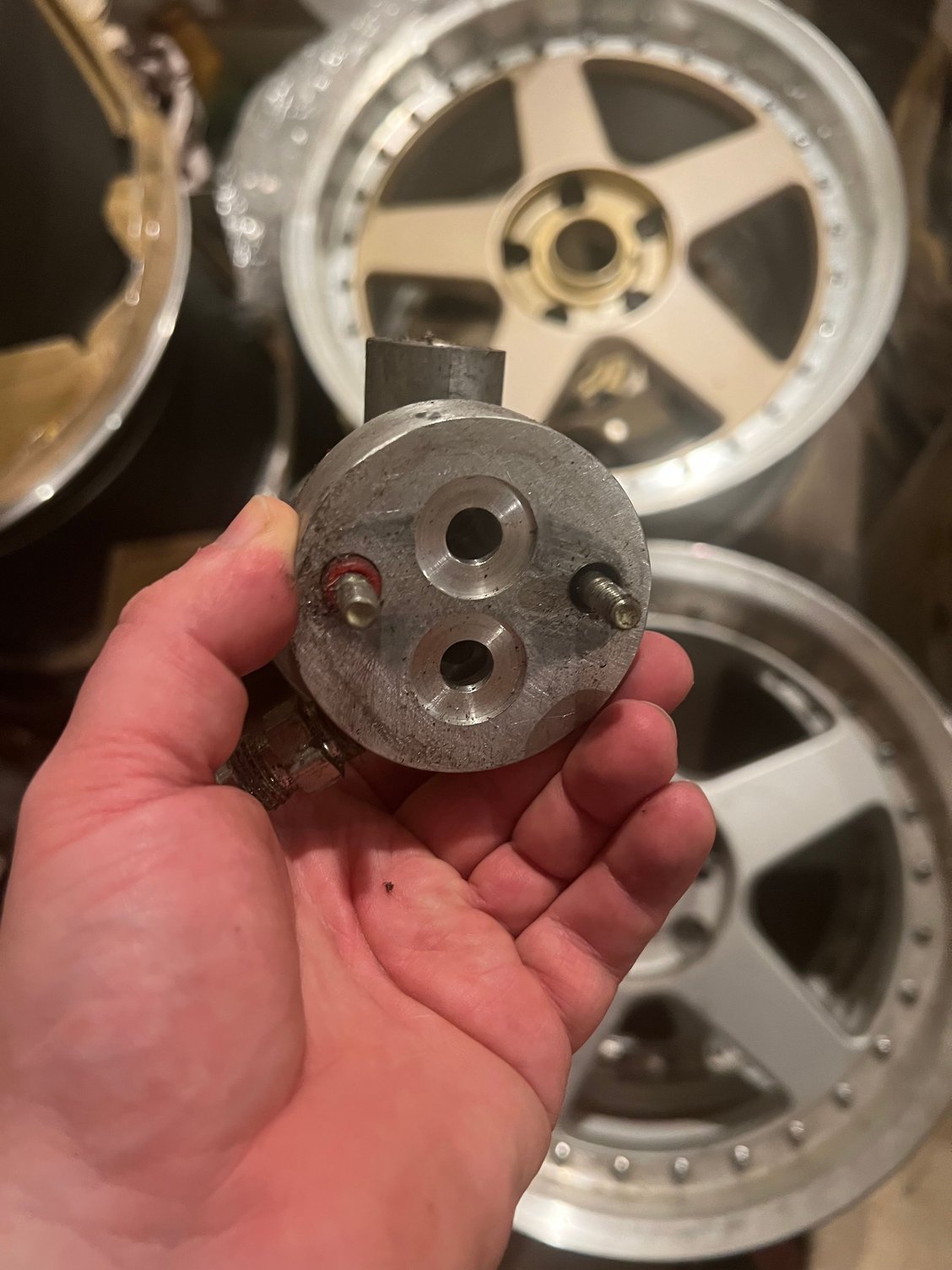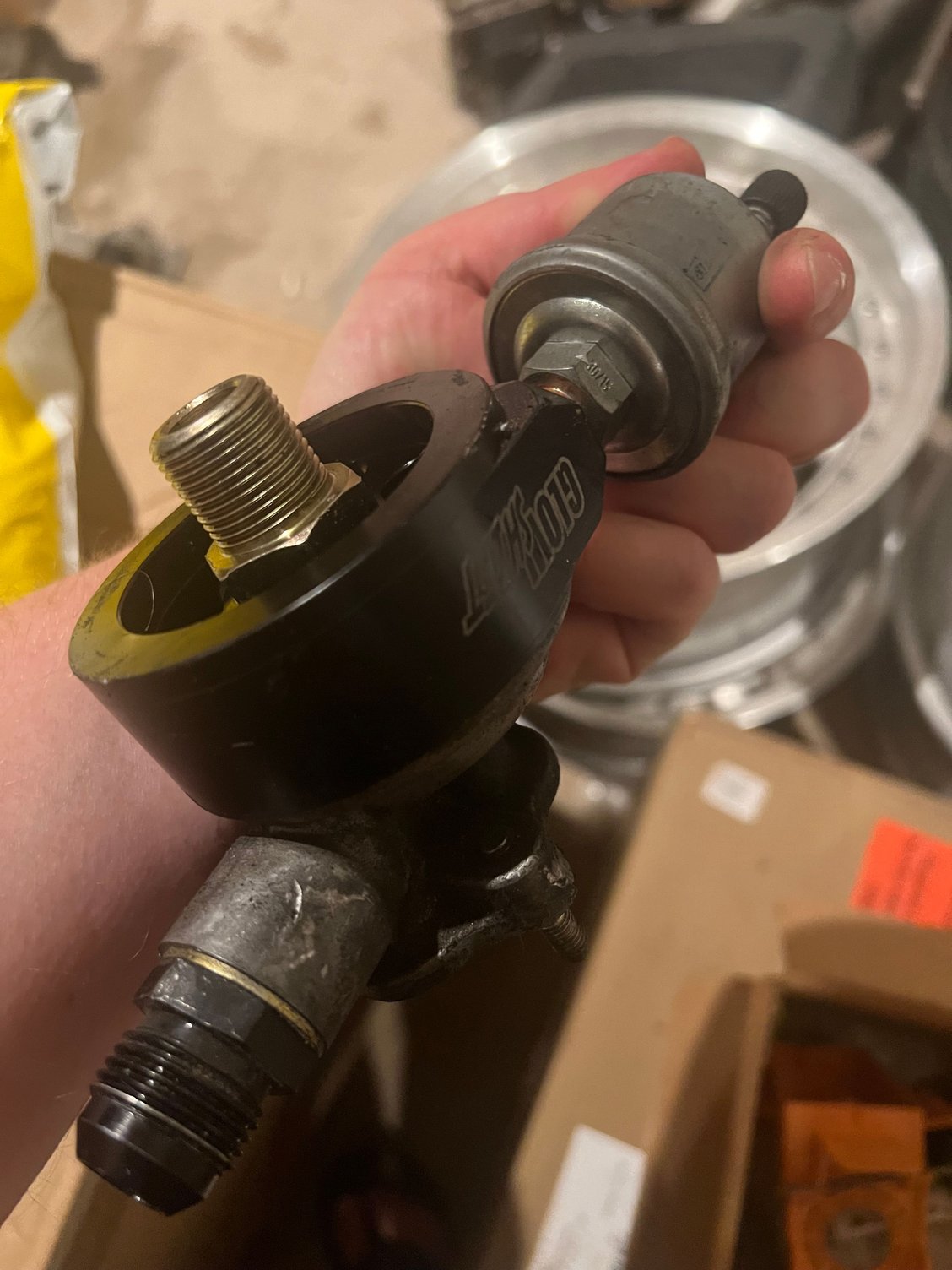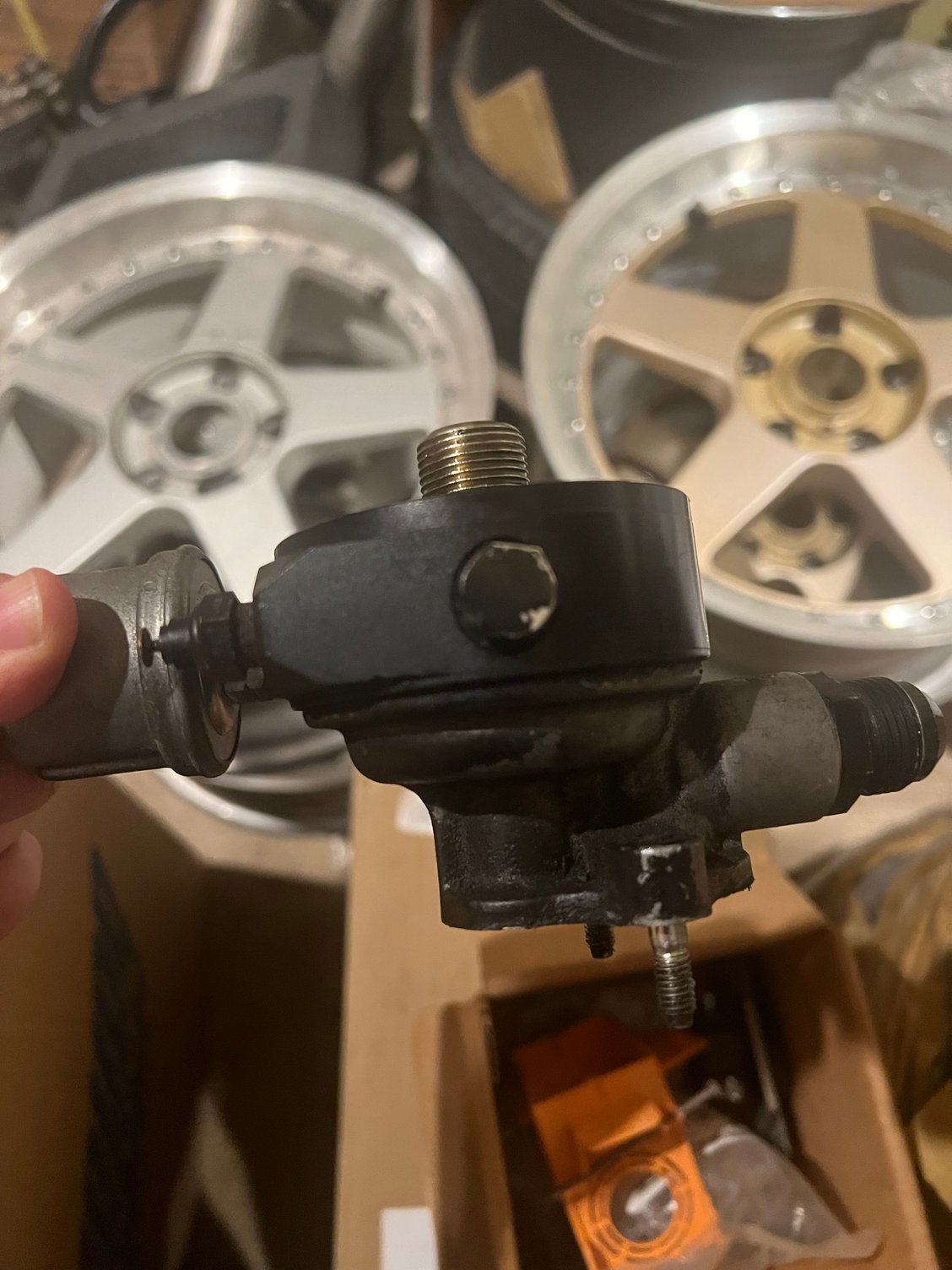 I have 2 relatively cheap options. Although I don’t think you need this for dual oil coolers. Look at the glowshift spacer picture, I just did a -10AN adapter straight into the stock pedestal.