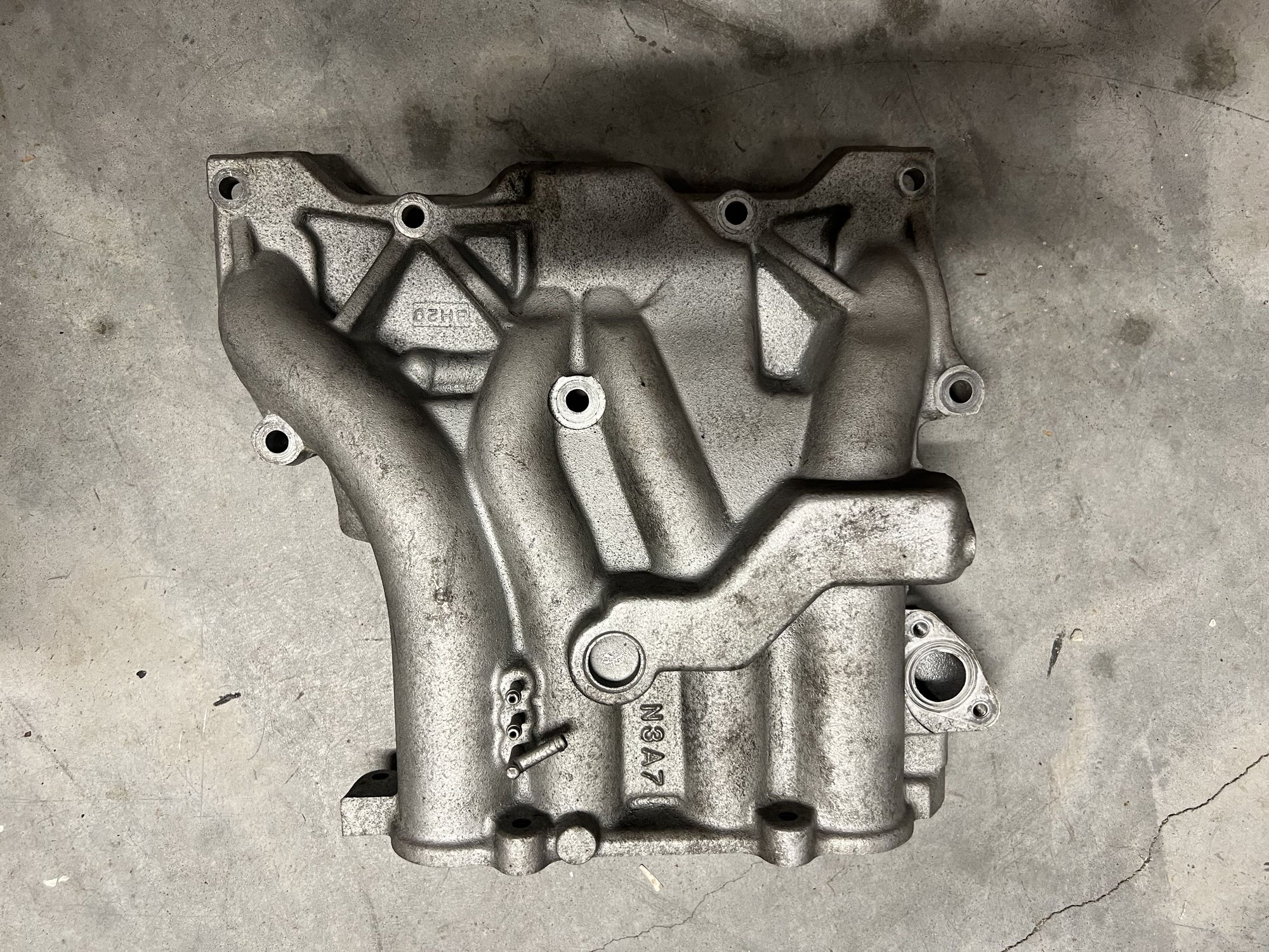 JDM low intake manifold. Previous owner had fun with a Dremel and removed quite a bit of material in the runners where it meets the engine. (The gasket still lines up)