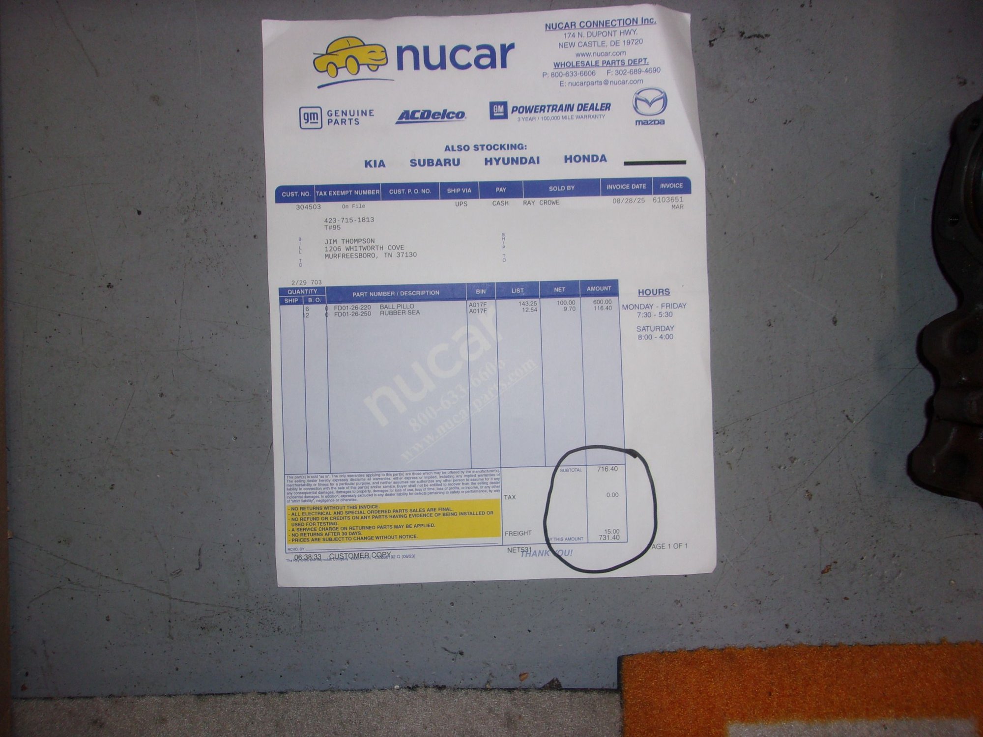 All my parts may be returned if not satisfied
