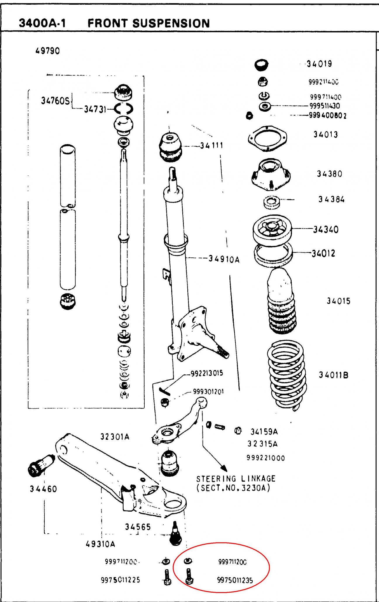 The bolt is on the RX7 on the front passenger side (see picture). It connects the wheel spindle to the lower control arm. There are 2 major problems with this bolt: it's upside down therefore water and rust can easily get into the threads, and the lower control arm prevents having easy access to it.
