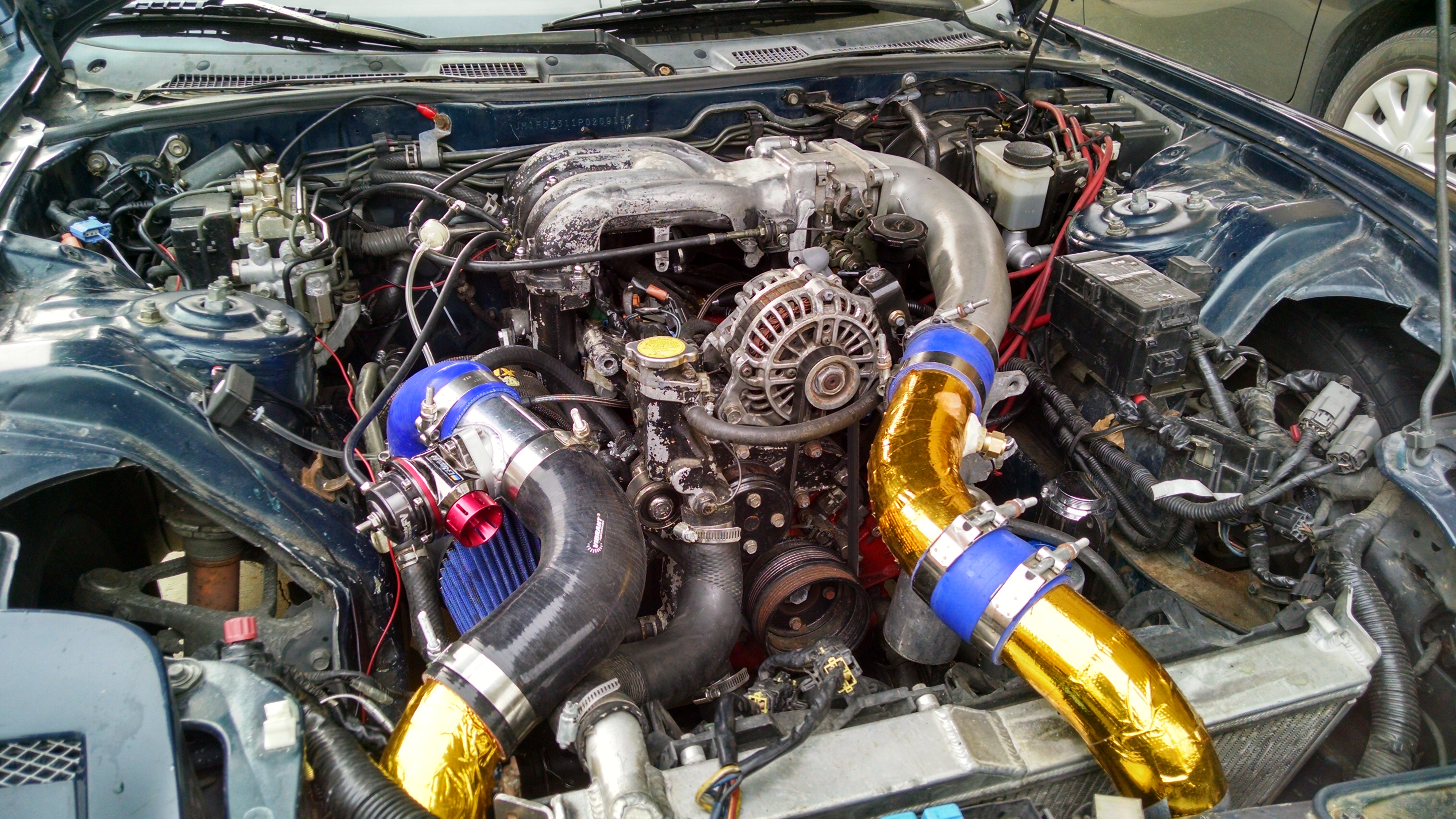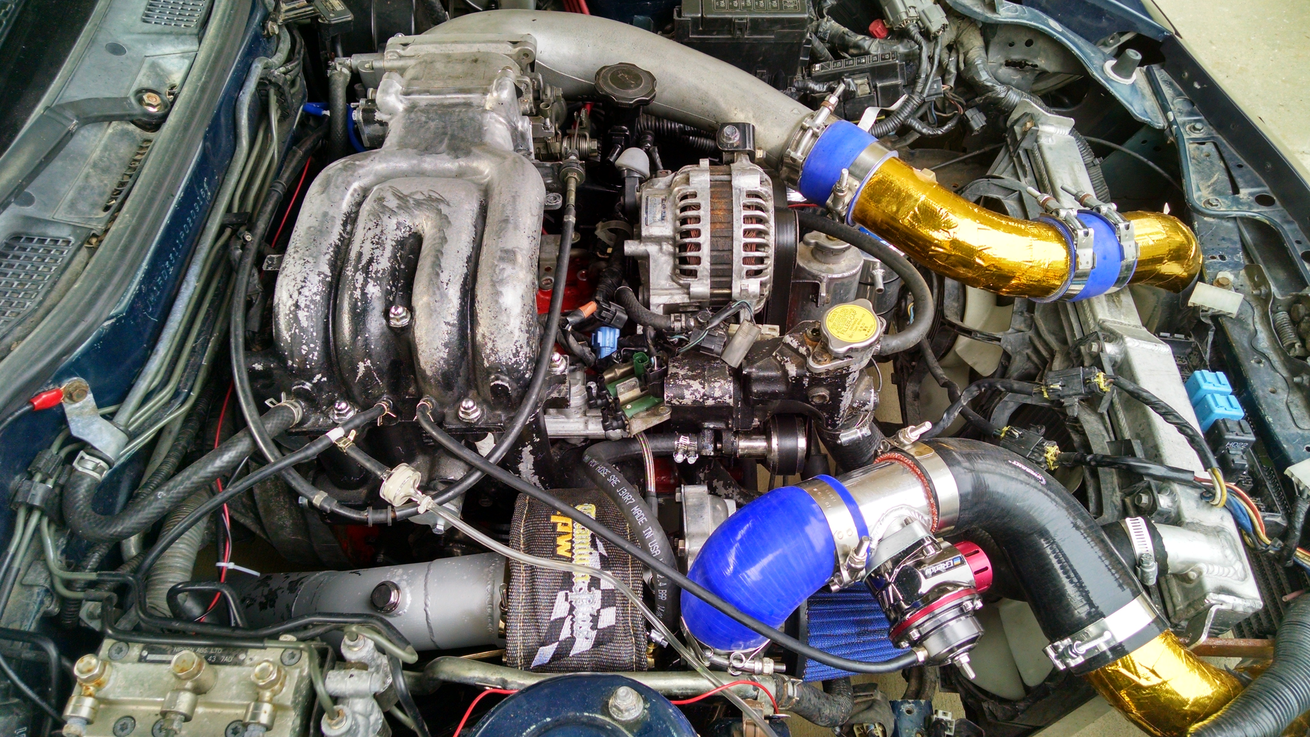 Coming along. Had to get the downpipe updated, and clean up the intake manifolds since they have some black paint peeling off them.