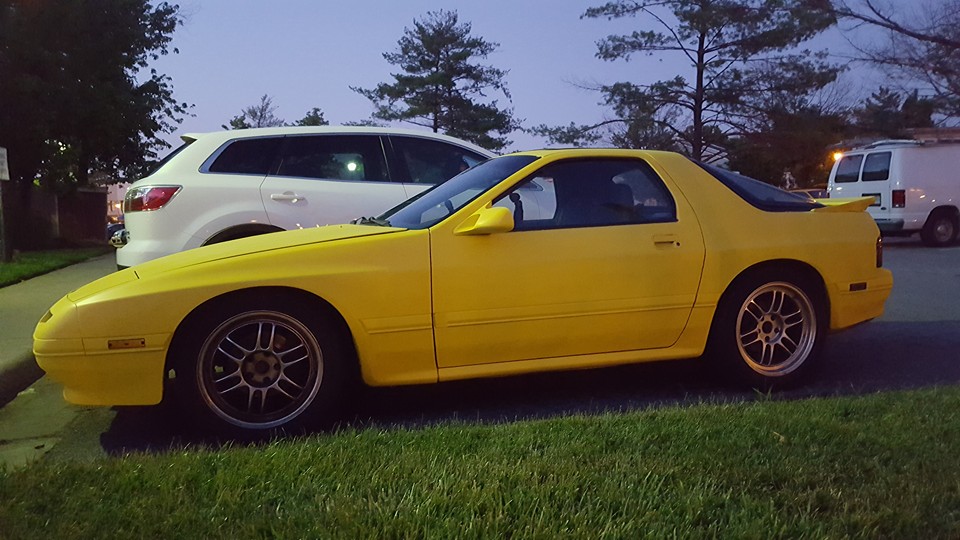 Well, the FD is no longer in Maryland... I just got her moved to the new house this afternoon. I neglected to take a picture, but we're going from a single car garage with about 2ft of clearance on either side of the car, and about 6-7 feet of room the long way... To a three car garage that the owner set up to have a welding station in (220v drop, and "cement board" lining a few sections of the wall).
